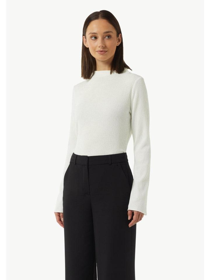 Выберите вневременную элегантность с этой облегающей футболкой с длинными рукавами и ребристой текстурой. Эластичная ткань идеально облегает фигуру и обеспечивает максимальный комфорт. Аккуратный подвернутый край горловины добавляет современный штрих этой повседневной модели. Создавайте разные образы - от офисного до непринужденного образа для выходного дня.