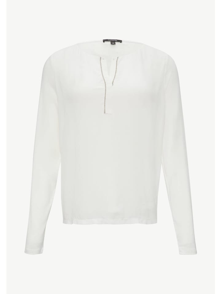 Этот топ с длинными рукавами из изысканного микса тканей станет вашим новым любимым предметом гардероба для создания универсальных образов. Женственный вырез туники с элегантной бижутерией добавит стильный штрих. Благодаря высокому содержанию вискозы топ приятно прилегает к коже и обеспечивает максимальный комфорт. Сочетайте его с брюками строгого кроя для создания элегантного делового образа или носите в непринужденной обстановке с джинсами.