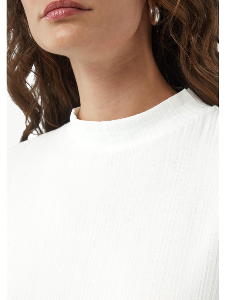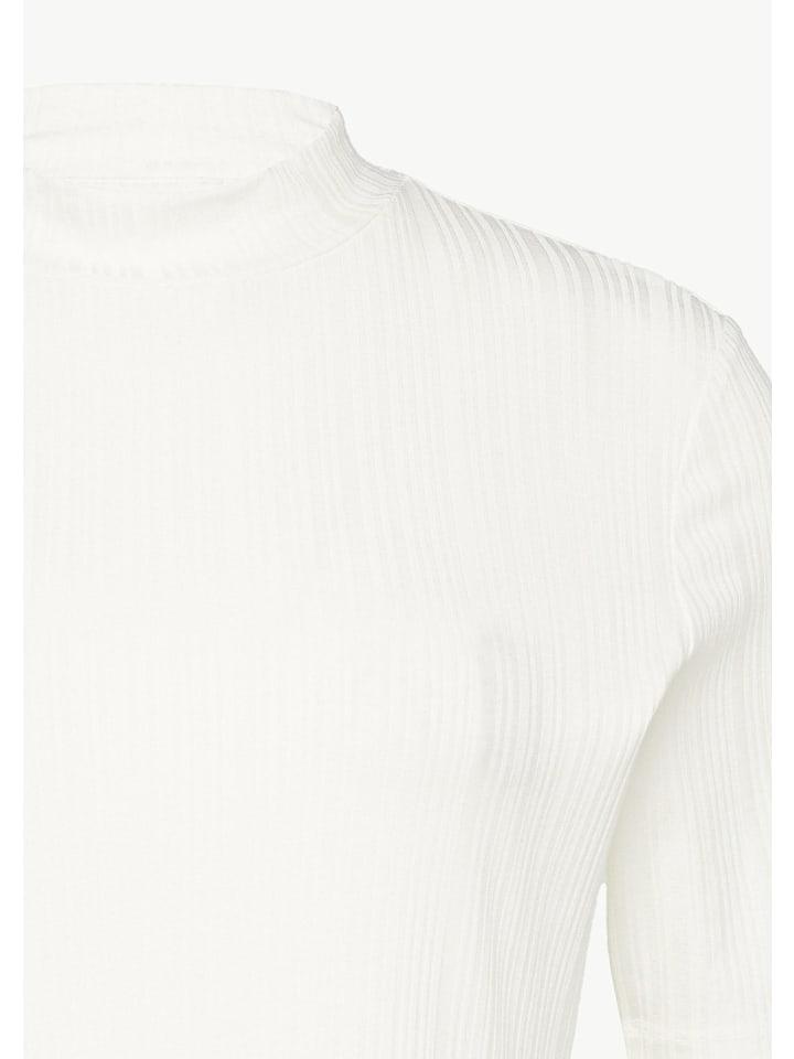 Приталенный силуэт и изысканные детали: эта облегающая футболка из лиоцеллового трикотажа впечатляет элегантным воротником-стойкой и фактурной рубчатой отделкой. Облегающий крой подчеркивает фигуру, а смесь вискозы и эластана обеспечивает комфорт. Идеально подходит для повседневного офисного ношения или стильного повседневного образа - вы легко сможете создать универсальные наряды на любой случай.