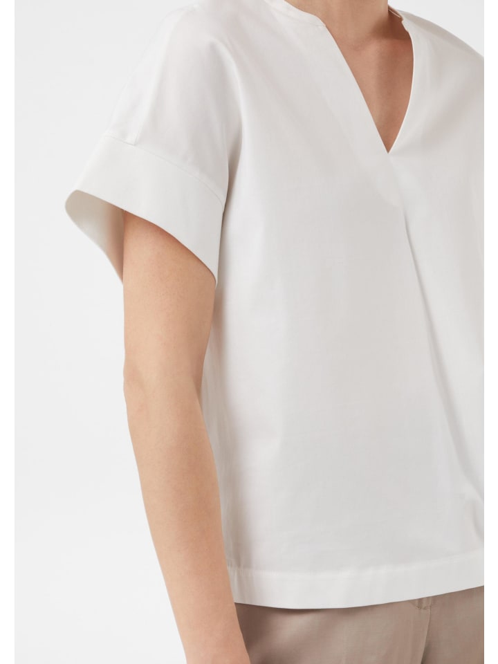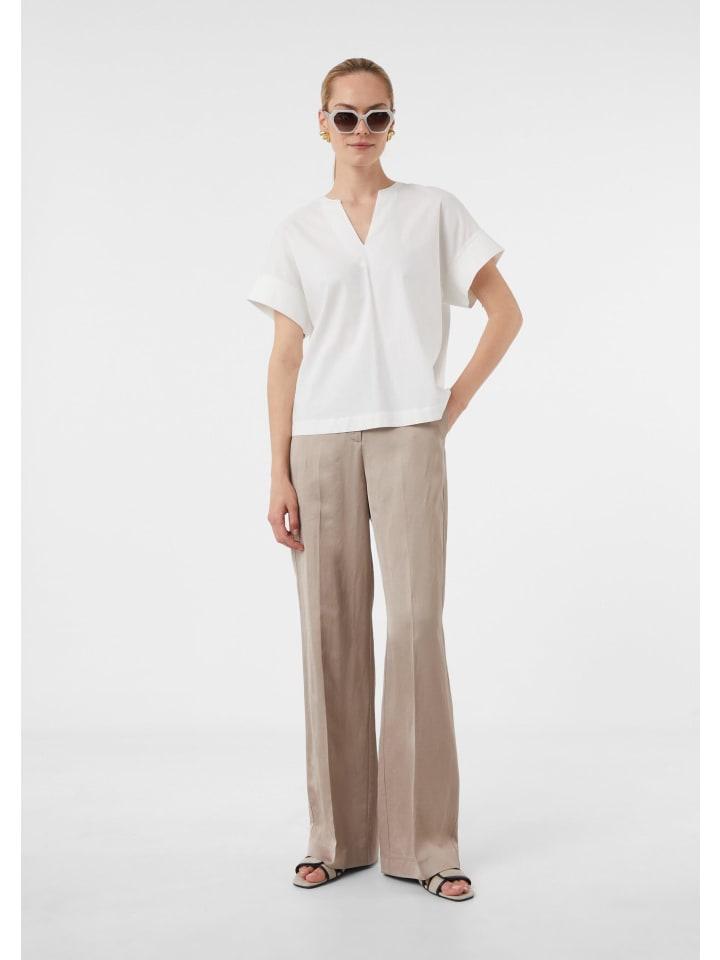 Ощутите летний повседневный стиль в этой футболке свободного кроя. Вырез-туника добавляет женственности, а спущенные плечи и короткие рукава обеспечивают комфорт. Сочетайте ее с узкими джинсами для создания повседневного и шикарного образа или с широкими льняными брюками для непринужденного пляжного образа.