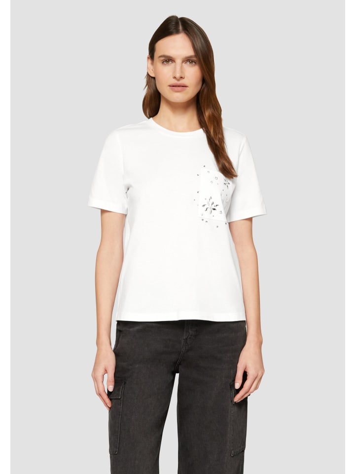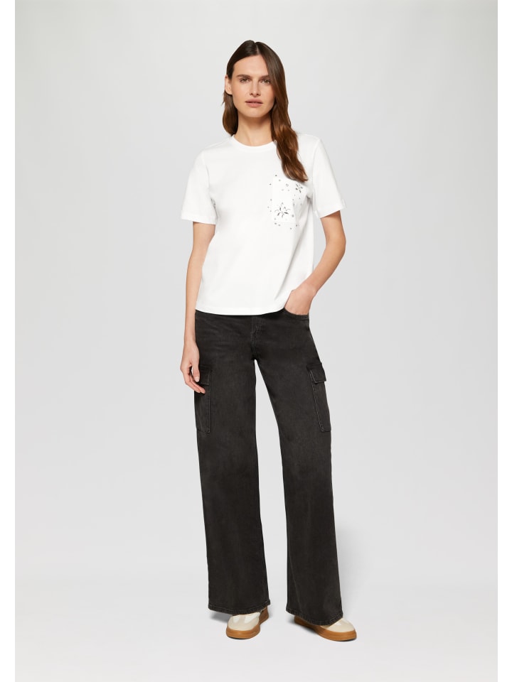 Эта мягкая хлопковая футболка со сверкающими стразами добавит нотку гламура вашему повседневному образу. Свободный крой и приятный эластичный трикотаж обеспечивают максимальный комфорт в повседневной носке.