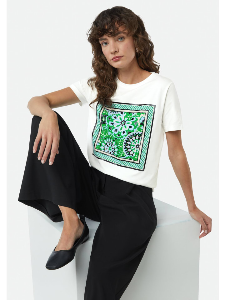 Повседневная элегантность и современный дизайн: эта футболка из смесовой хлопковой ткани впечатляет своим ярким принтом спереди. Классический крой и круглый вырез горловины создают непринужденный силуэт. Трикотажная ткань с модалом обеспечивает комфорт и свободу движений. Идеально подходит для повседневного образа - сочетайте ее с джинсами или шортами для стильного повседневного образа.