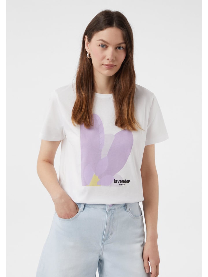 Повседневный шик и комфорт: эта хлопковая футболка с эффектным принтом спереди станет вашей новой любимой повседневной вещью. Классический круглый вырез горловины и классический крой подчеркнут любую фигуру. Мягкий трикотаж обеспечивает комфорт, а рисунок спереди и сзади добавит вашему образу уникальности. Идеально подходит для расслабленного отдыха и достаточно универсальна, чтобы сочетаться с другими вещами.