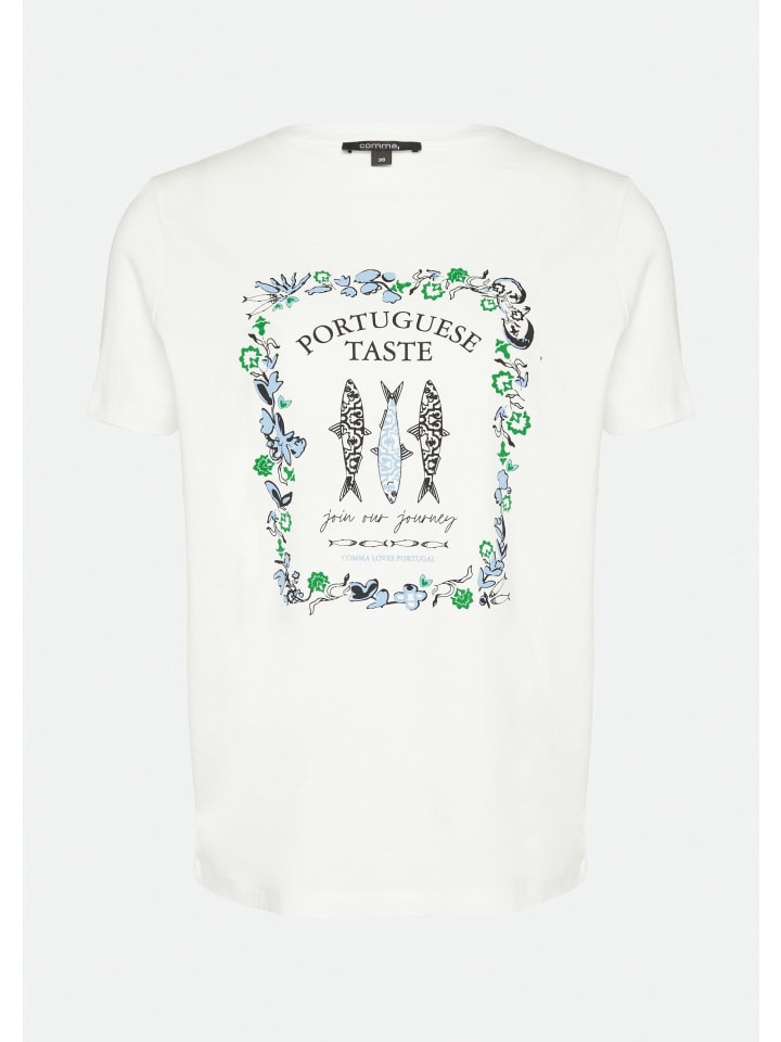 Повседневная элегантность и современный дизайн: эта футболка из смесовой хлопковой ткани впечатляет своим ярким принтом спереди. Классический крой и круглый вырез горловины создают непринужденный силуэт. Трикотажная ткань с модалом обеспечивает комфорт и свободу движений. Идеально подходит для повседневного образа - сочетайте ее с джинсами или шортами для стильного повседневного образа.