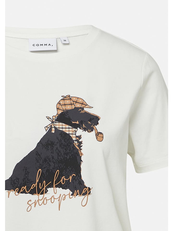 Повседневный образ: эта футболка свободного кроя впечатляет стильным принтом спереди и классическим круглым вырезом. Трикотажная ткань приятна к телу и обеспечивает максимальный комфорт. Сочетайте ее с джинсами для создания непринужденного повседневного образа или с блейзером и шортами для создания модного городского образа. Универсальная базовая вещь для вашего гардероба.