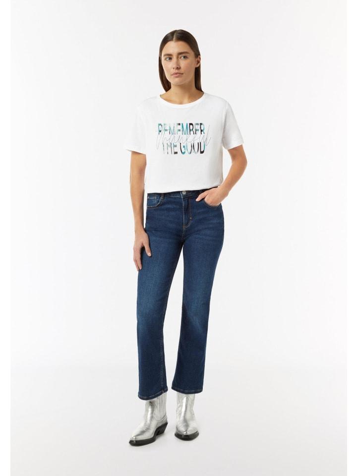 Футболка из динамичного джерси для повседневного образа. Классический крой и круглый вырез горловины обеспечивают максимальный комфорт. Высококачественный хлопковый материал приятен на ощупь. Эффектный принт спереди добавит индивидуальности вашему образу. Сочетайте ее по-разному - с джинсами для повседневного образа или под пиджаком для создания элегантного делового стиля.