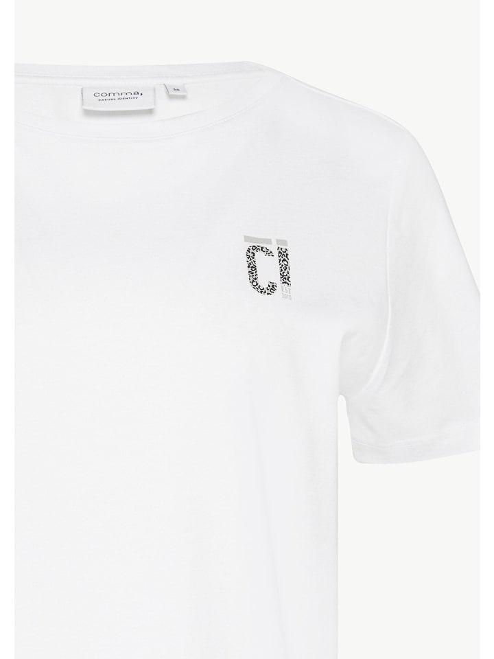 Повседневная и стильная футболка с эффектными принтами: эта трикотажная рубашка прямого кроя из чистого хлопка сочетает в себе комфорт и стиль. Круглый вырез горловины с ребристой отделкой и короткие рукава создают классический образ. Принты спереди и сзади делают ее по-настоящему привлекательной. Идеально подходит для повседневного образа - сочетайте ее с джинсами или шортами для создания непринужденного повседневного стиля.