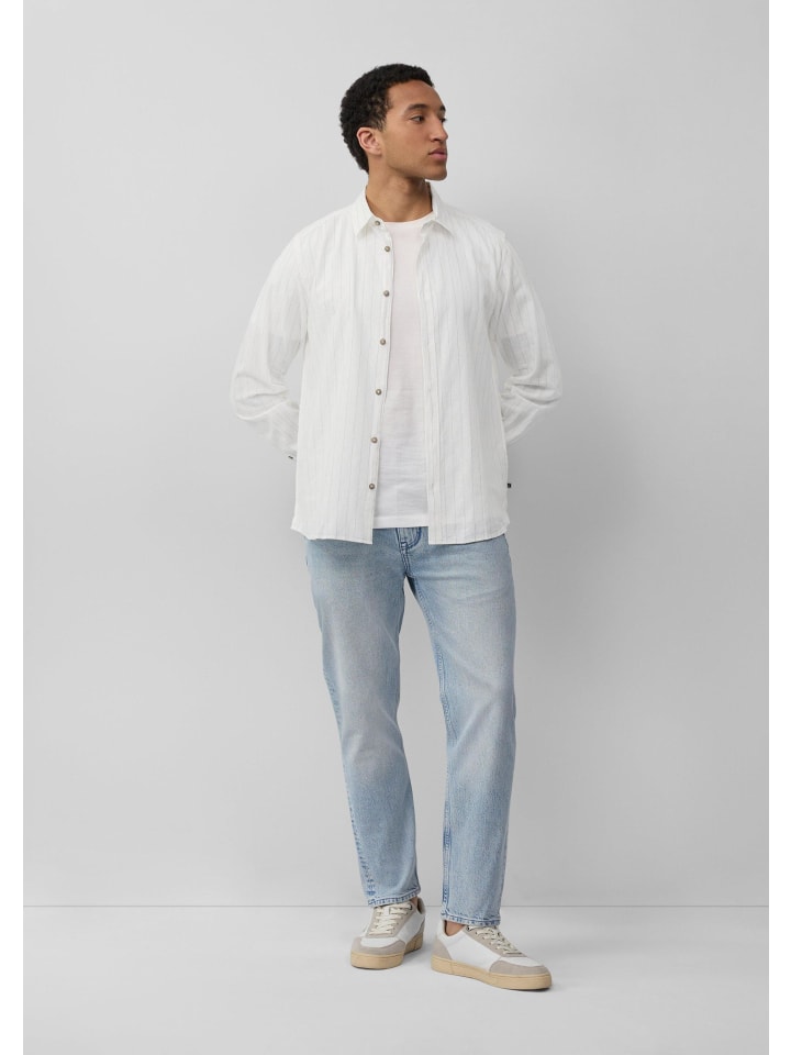 Эта воздушная, легкая рубашка прямого кроя сочетает в себе элегантность полосатой ткани и летний комфорт. Смесь хлопка и льна, а также классический воротник «Кент», делают ее идеальным компаньоном для расслабленных дней и теплых вечеров.