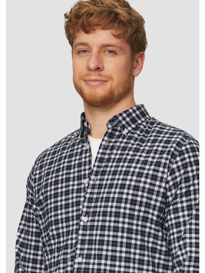 Эта клетчатая хлопковая рубашка классического кроя сочетает в себе повседневный комфорт и вневременной стиль. Отложной воротник на пуговицах и эластичная ткань делают ее идеальным дополнением к непринужденным повседневным образам. Закругленный подол и практичные манжеты.