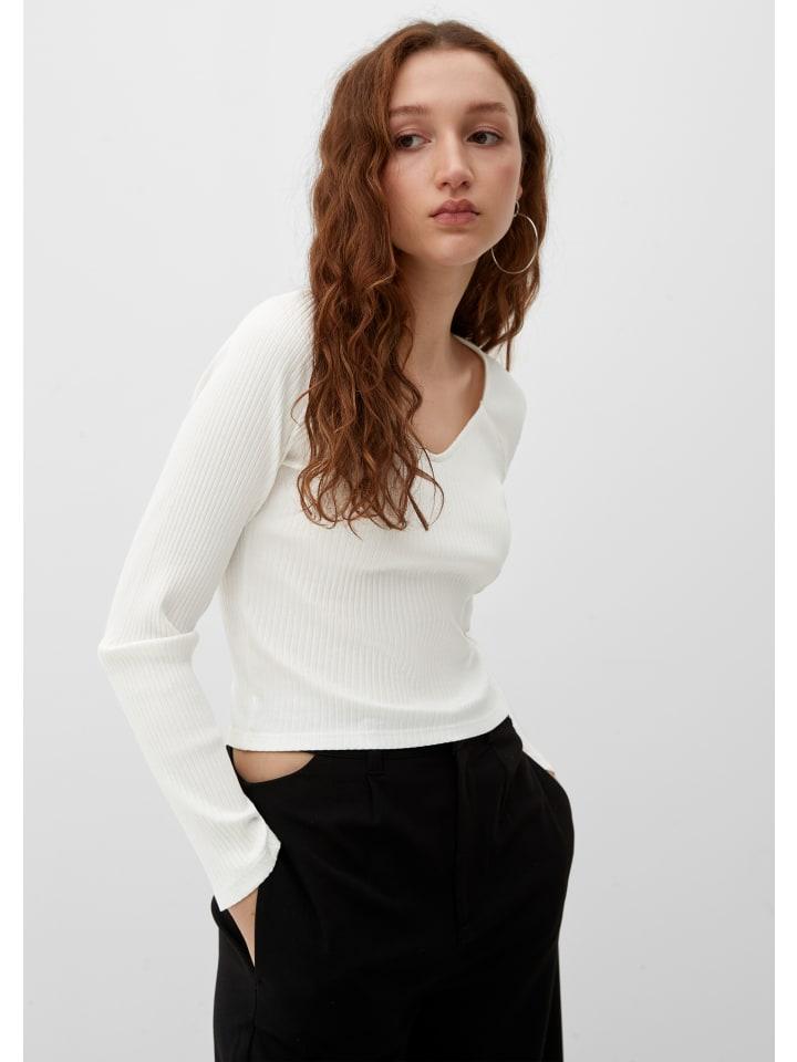 Откройте для себя модный топ с длинными рукавами и ребристым тиснением! Вырез сердечком и облегающий крой подчеркнут ваш стиль. Благодаря высококачественному хлопковому эластичному материалу вы будете чувствовать себя невероятно комфортно в течение всего дня. Идеально подходит для повседневного образа!