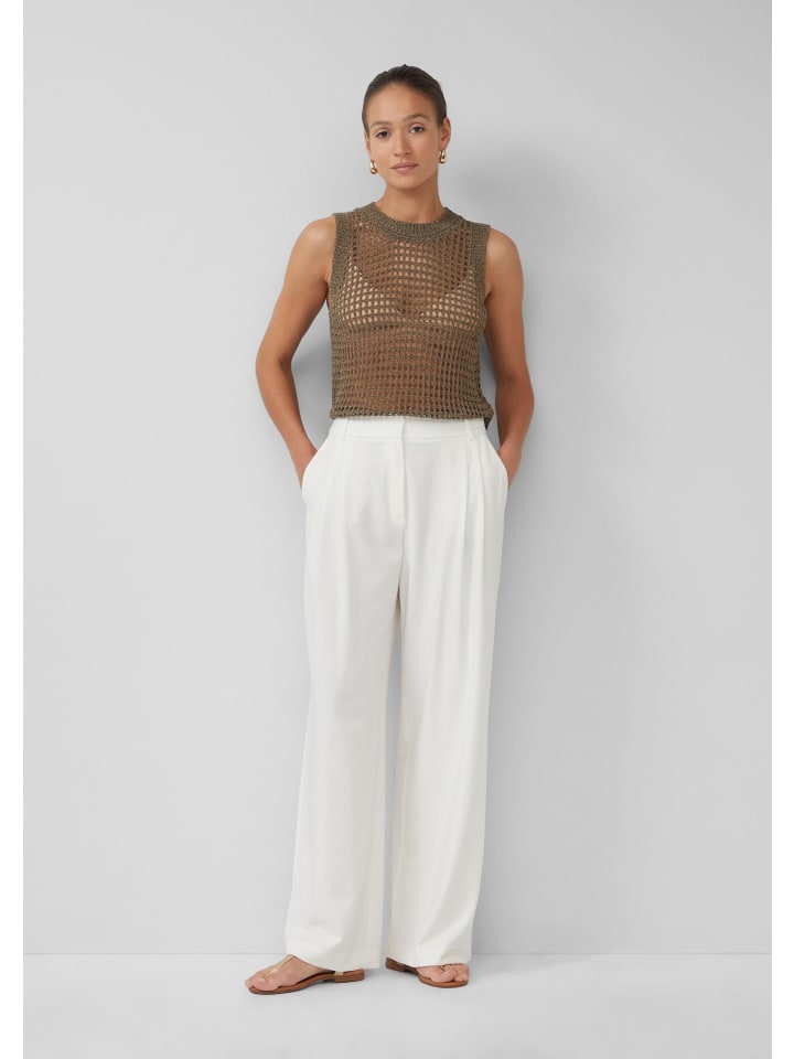 Уверенные и стильные: эти очень широкие брюки с креповой текстурой станут вашим акцентом на любой случай. Свободный крой и высокое качество исполнения подчеркнут ваш индивидуальный стиль. От деловых встреч до праздничных ужинов - вы будете впечатлять своей вневременной элегантностью и уверенным видом.