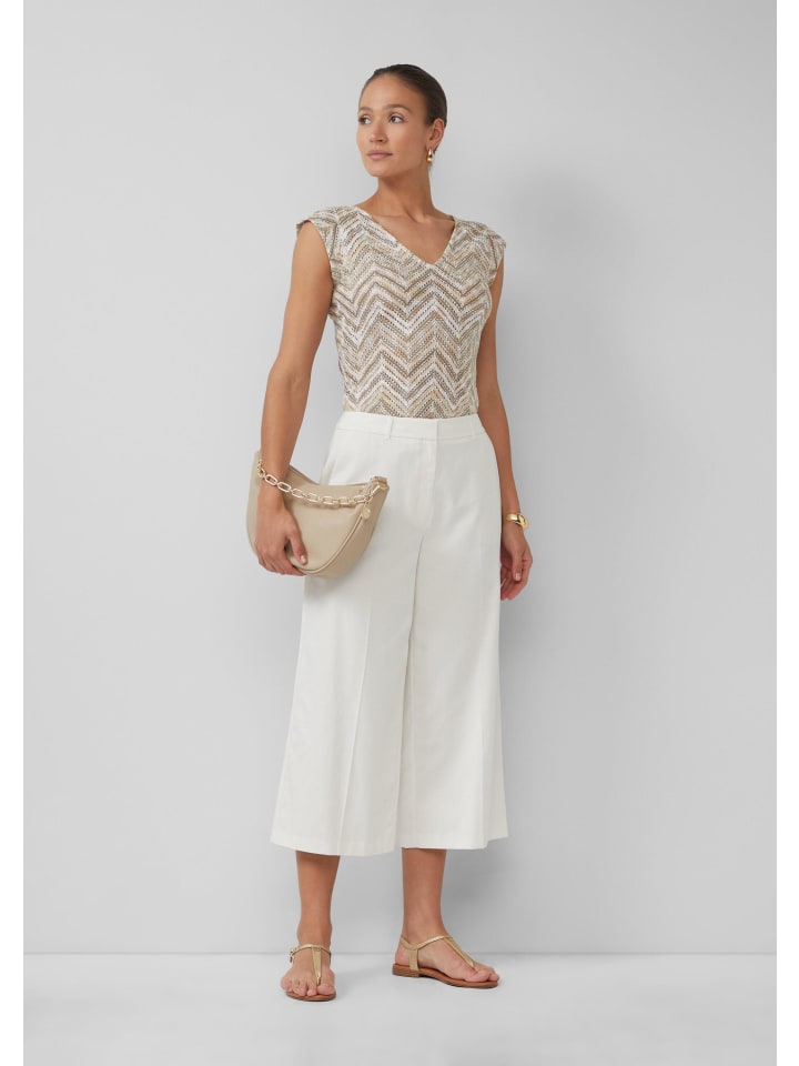 Элегантный повседневный стиль и современный шик: эти широкие брюки-кюлоты из смеси лиоцелла и хлопка станут вашим незаменимым аксессуаром на любой случай. Благодаря струящемуся крою и практичным деталям, таким как шлевки для ремня и карманы, они сочетают в себе комфорт и стиль. Вы будете производить впечатление как в офисе, так и на непринужденном ужине - уверенно и стильно.