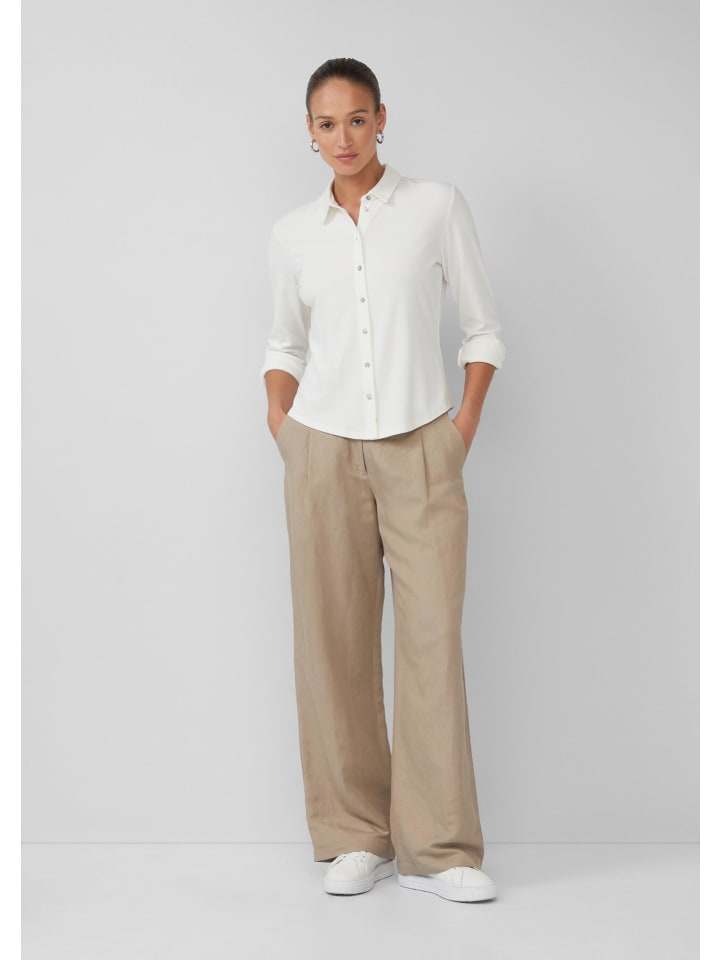 Элегантность и комфорт: эта трикотажная блузка с перламутровыми пуговицами станет вашим стильным спутником в офисе и на отдыхе. Струящаяся ткань и изысканные манжеты придадут вам уверенный вид. Комбинируйте ее по-разному и подчеркните свой индивидуальный стиль - от деловых встреч до неформальных ужинов.
