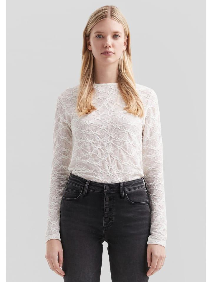 Ваш новый фаворит: рубашка с длинными рукавами, облегающим кроем и круглым вырезом. Идеально подходит для повседневной носки и прохладных вечеров. Эластичная жаккардовая ткань обеспечивает комфорт, а слегка прозрачный дизайн привлекает внимание.