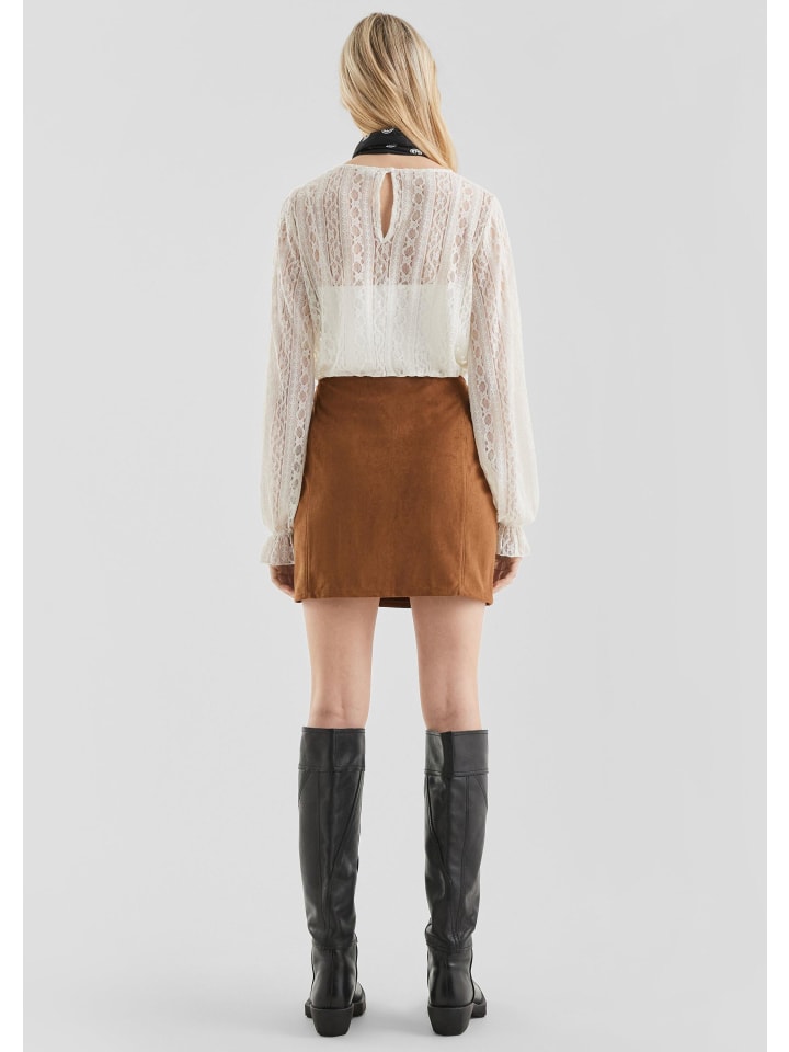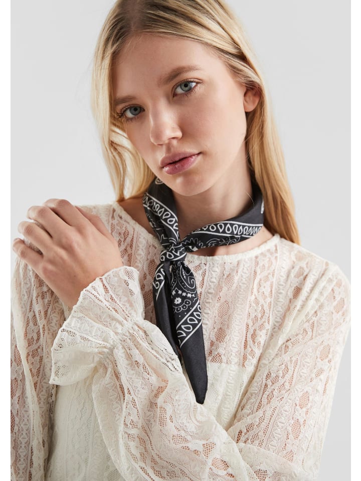Ваш новый стильный спутник: этот полупрозрачный кружевной топ с круглым вырезом идеально дополнит ваш уличный образ. Эластичный полиамид и классический крой обеспечат максимальный комфорт - как для повседневного образа, так и для нарядного.