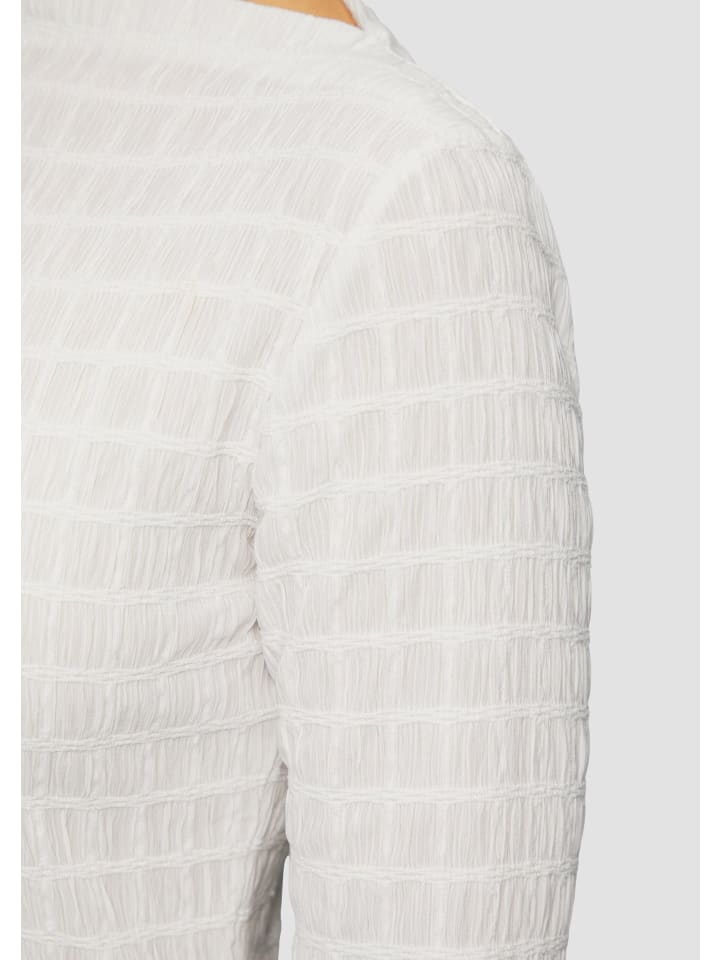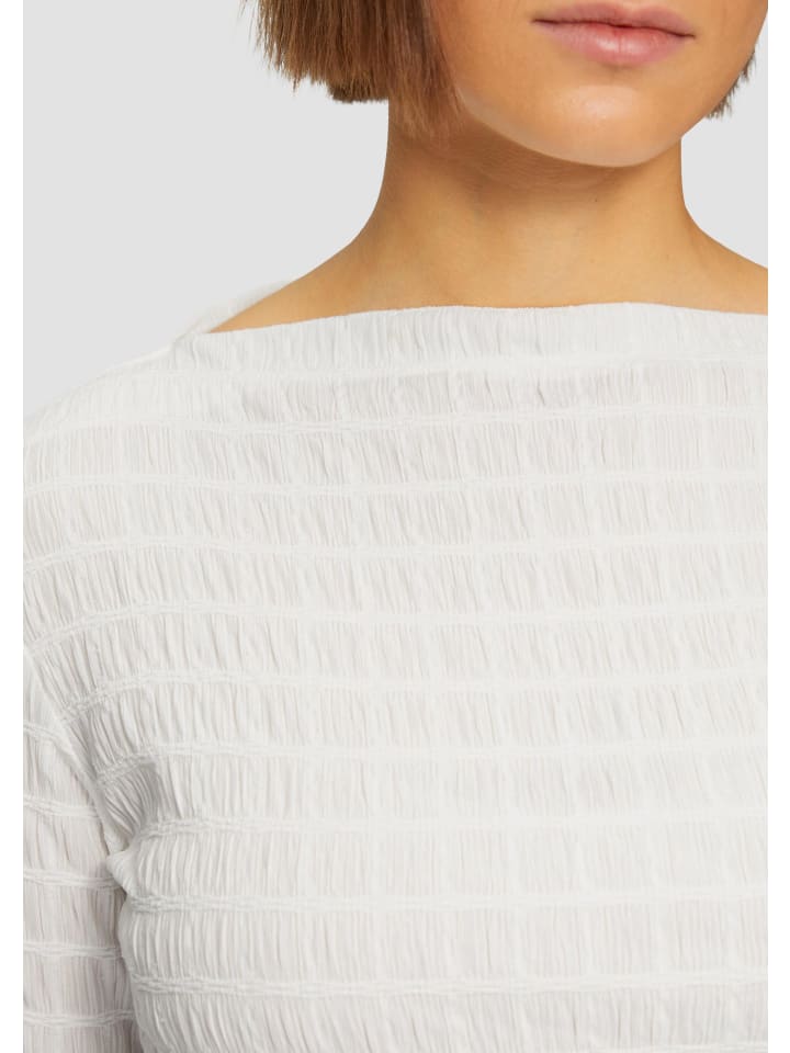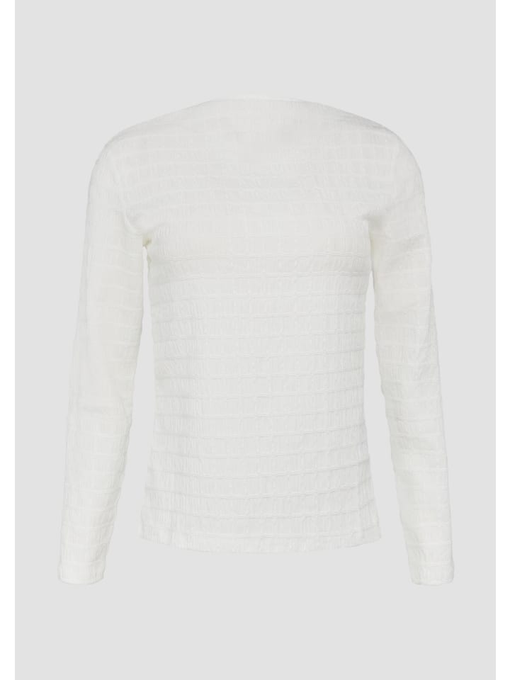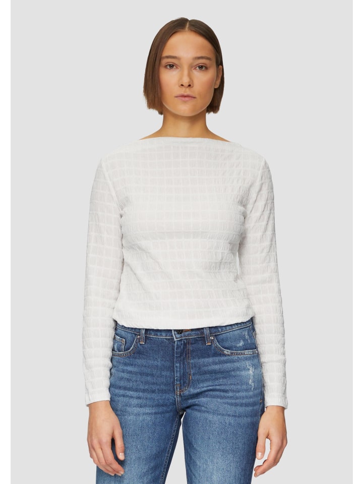 Эта женственная трикотажная рубашка с фактурным рисунком сочетает в себе повседневный стиль и комфорт. Элегантный вырез «лодочка» и облегающий крой идеально подчеркнут вашу фигуру. Благодаря эластичному материалу она станет отличным повседневным спутником.