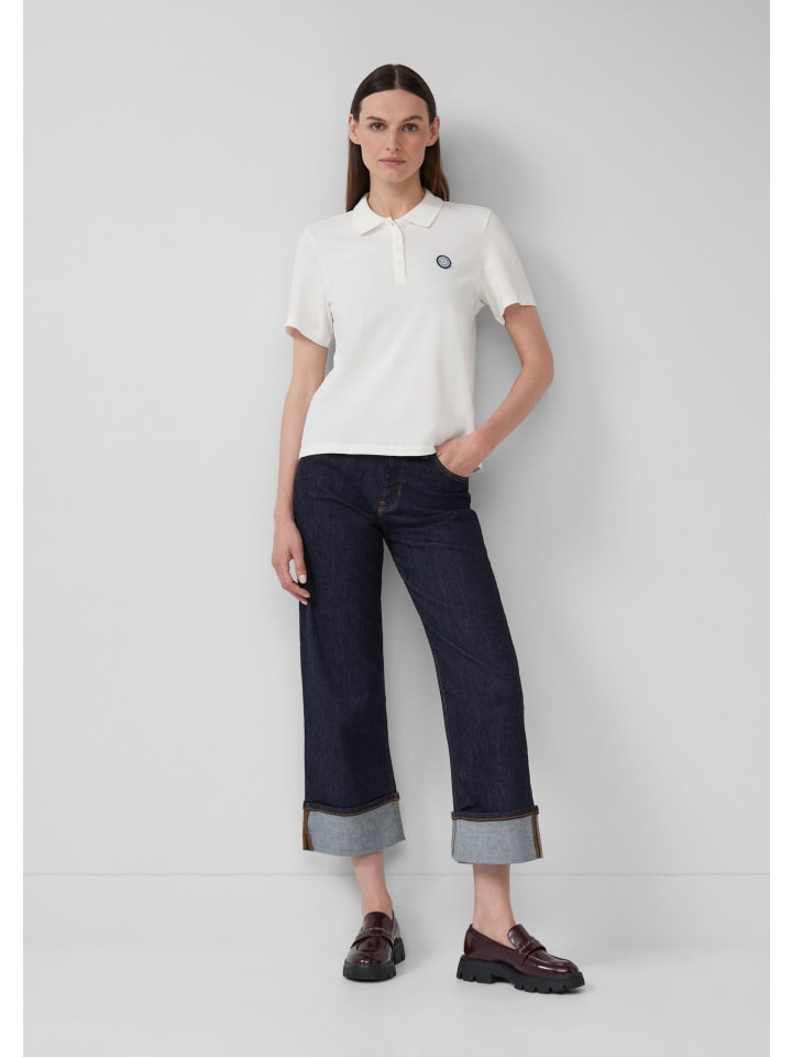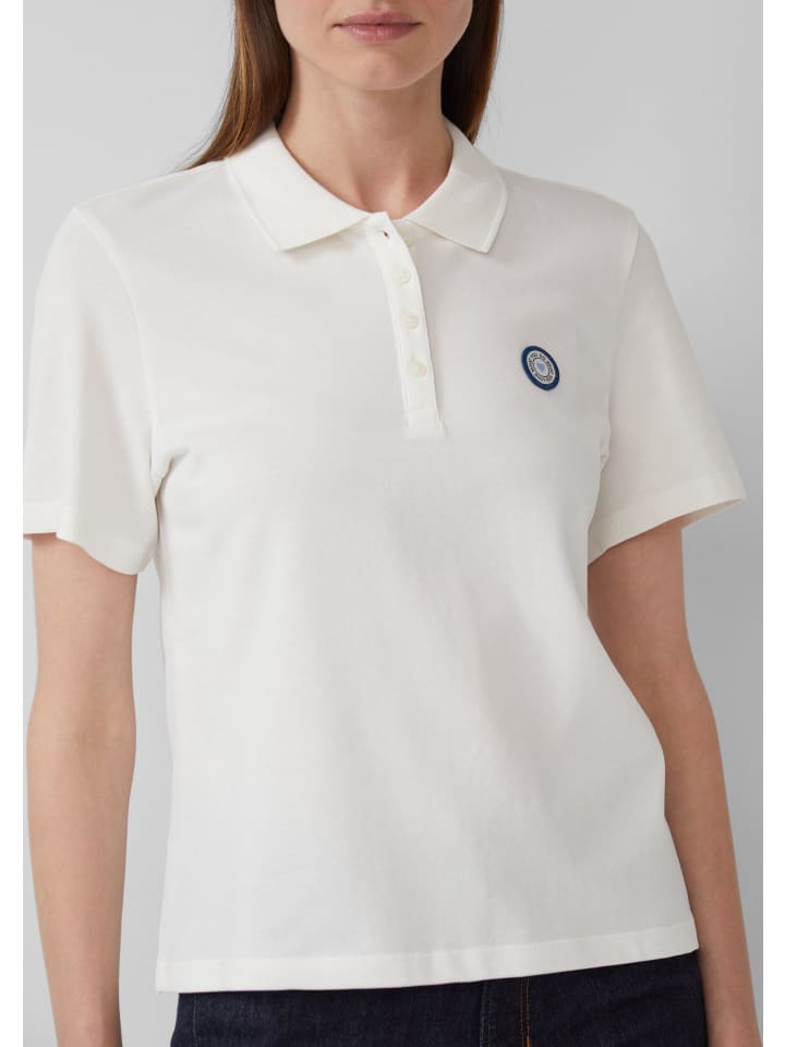 Спортивно-элегантная рубашка-поло из мягкого хлопкового пике с полосатым рисунком. Классический воротник-поло и планка на пуговицах придают укороченной форме современный вид. Нашивка с логотипом добавит стильный акцент вашему повседневному образу.