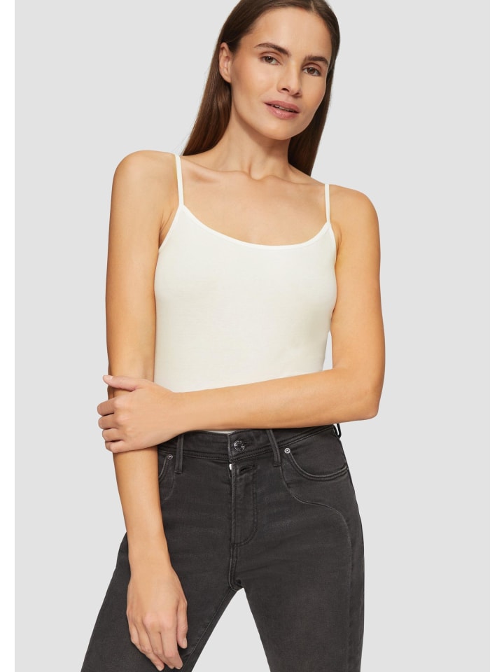 Этот эластичный топ на тонких бретельках из мягкого трикотажа идеально садится по фигуре. Регулируемые бретельки позволяют подогнать посадку - идеально подходит для расслабленных летних дней или в качестве базового многослойного элемента.