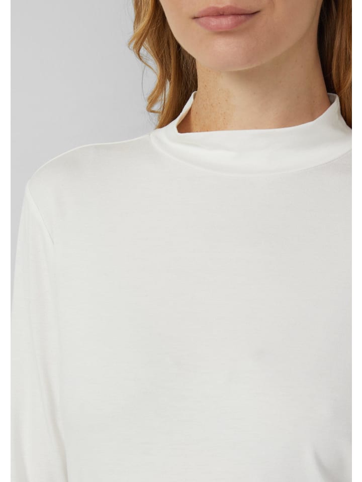 Эта мягкая рубашка облегающего кроя с длинными рукавами впечатляет своим элегантным воротником-стойкой. Струящаяся трикотажная ткань красиво драпируется, делая эту рубашку идеальным дополнением к расслабленным, повседневным образам.