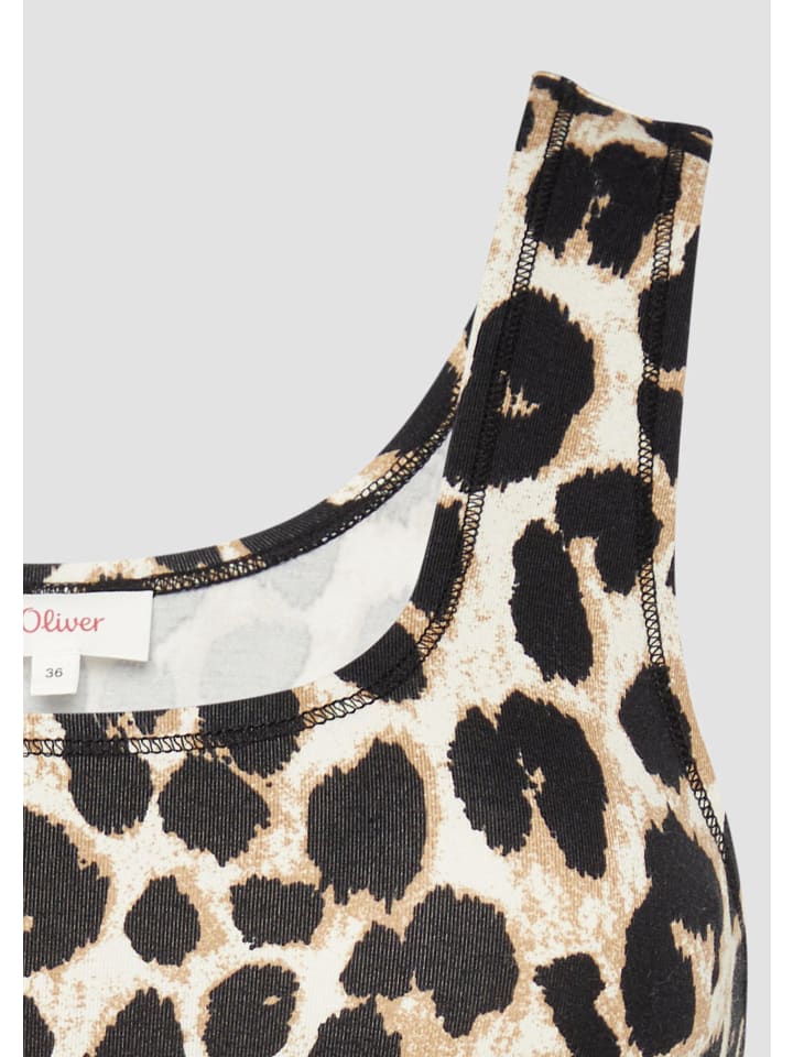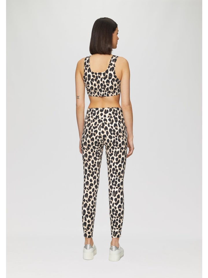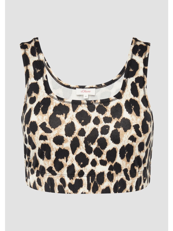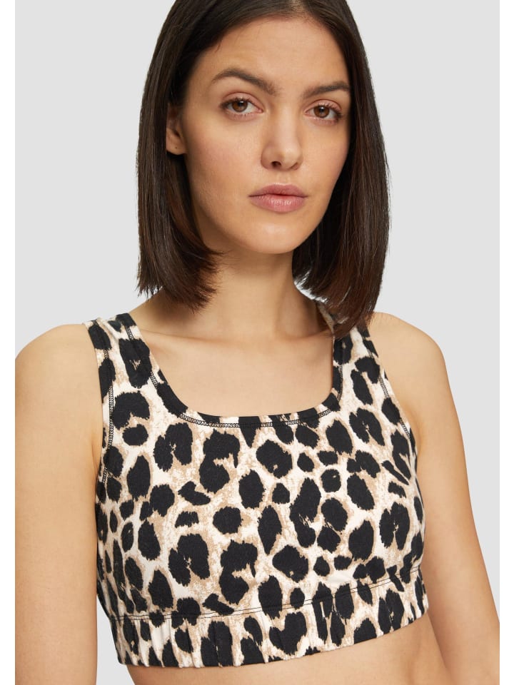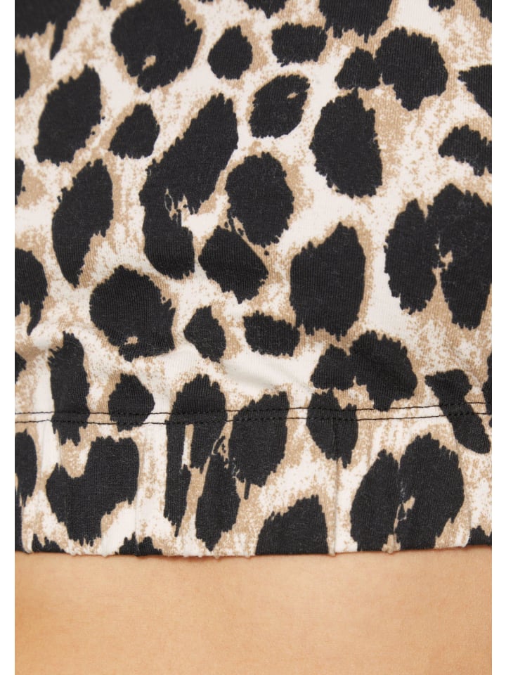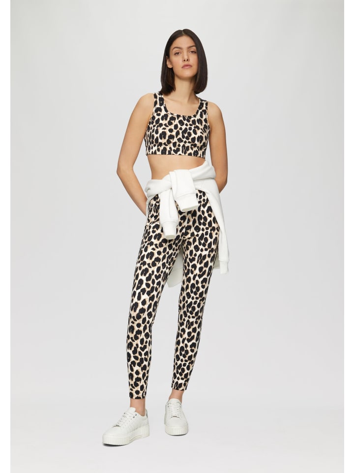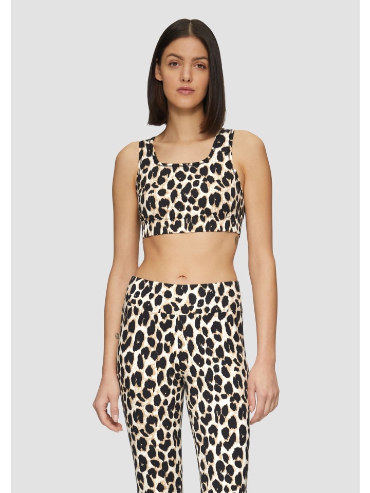 Это спортивное трикотажное бюстье со стильным леопардовым принтом идеально подходит для тренировок или в качестве повседневной одежды для дома. Эластичная ткань с круглым вырезом обеспечивает комфортную посадку и максимальную свободу движений.