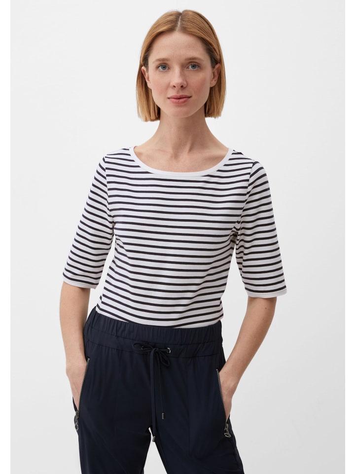 Весенняя стильная футболка из полосатого джерси. Эта мягкая и удобная футболка из 95% хлопка и 5% эластана выгодно подчеркивает фигуру и идеально подходит женщинам. Короткие рукава и классический круглый вырез горловины придают этой повседневной футболке с короткими рукавами вневременную элегантность. Эта универсальная футболка идеально сочетается с джинсами или шортами и добавит стильности любому образу. Высококачественная ткань и модный полосатый рисунок делают ее незаменимой вещью в вашем повседневном гардеробе. Ищете непринужденный, но в то же время стильный и удобный образ? Эта футболка из джерси - то, что вам нужно! Приобретите эту футболку женственного кроя прямо сейчас и добавьте нотку вечной элегантности в свой весенний гардероб.
