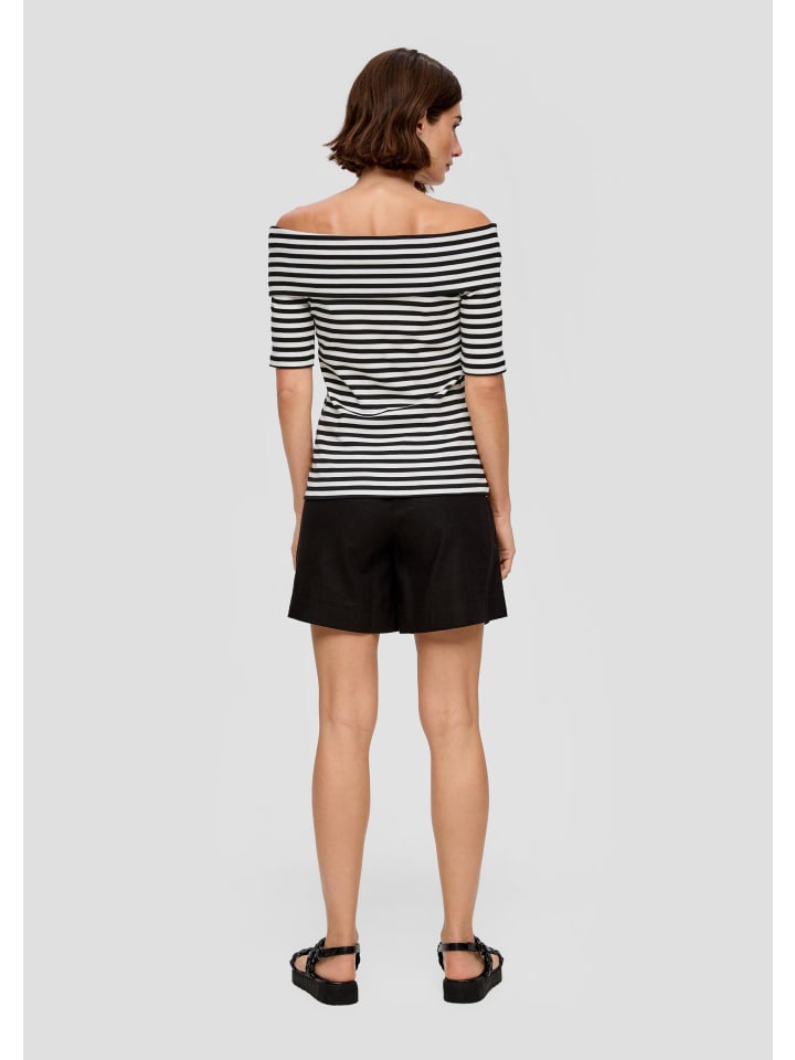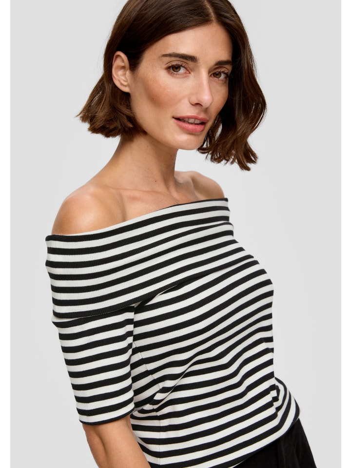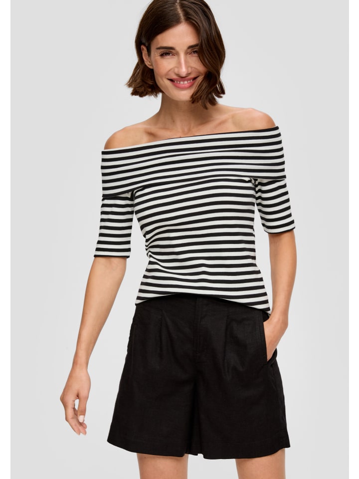 Эта полосатая футболка с открытыми плечами и облегающим кроем идеально подходит для создания непринужденных повседневных образов. Легкая ткань из смеси хлопка и эластана обеспечивает комфорт. Сочетайте ее с шортами или джинсами летом для создания модного образа. Откройте для себя универсальные возможности!