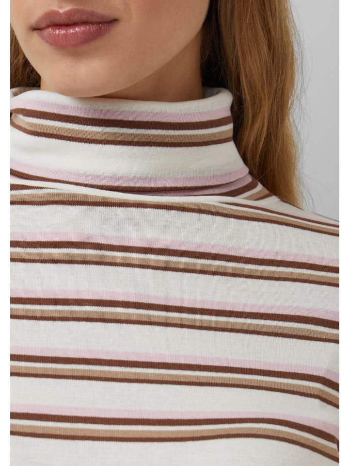 Ваш новый любимый топ с длинными рукавами для расслабленного отдыха! Мягкий трикотаж с эластичной резинкой приятно прилегает к коже и обеспечивает идеальный комфорт. Классический полосатый узор и высокая водолазка делают этот полосатый топ универсальным спутником - будь то для кофе с друзьями или уютных выходных дома. Легко комбинируется и невероятно удобен!