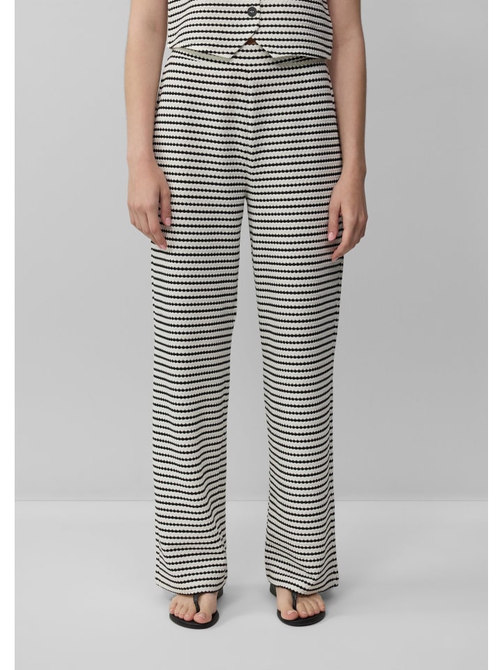 Ищете комфорт и стиль? Эти свободные брюки широкого кроя обязательно станут вашими новыми фаворитами. Текстурированный жаккардовый трикотаж невероятно приятен на ощупь, а высокая эластичная резинка на поясе обеспечивает свободу движений. Прогуливаетесь ли вы по городу или наслаждаетесь неторопливым завтраком, вы будете чувствовать себя великолепно и выглядеть потрясающе!