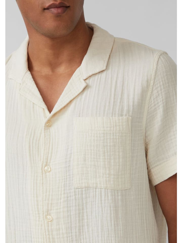 Воздушная муслиновая рубашка свободного покроя для отдыха на природе - идеальный вариант для летних дней. Классический лацкан и практичный нагрудный карман сделают ее идеальным спутником на пляже, вечеринках или прогулках по городу.