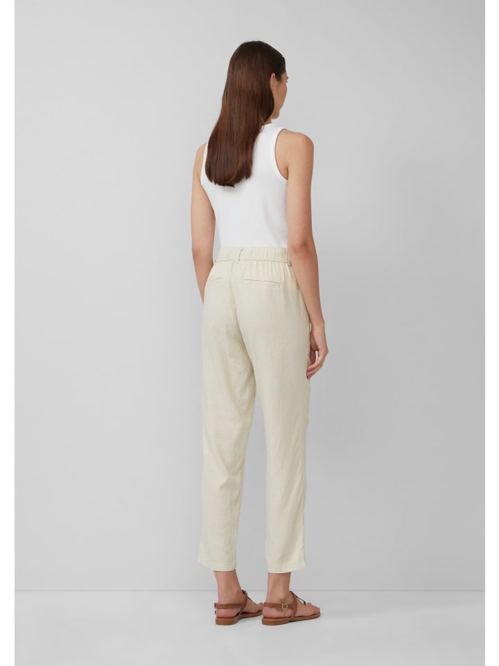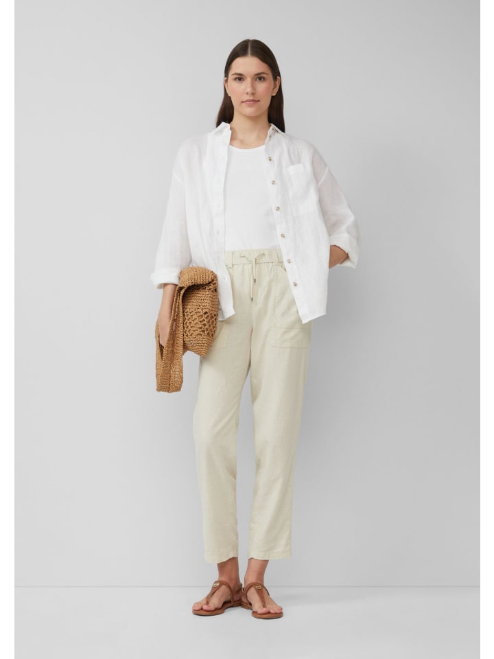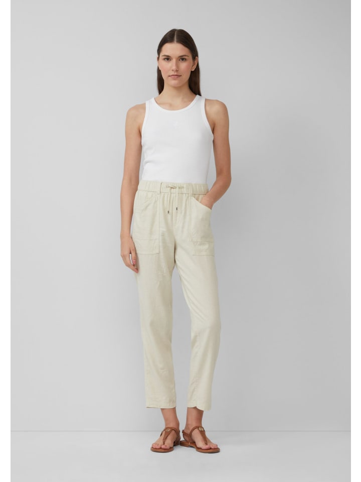 Свободные брюки из смесовой льняной ткани с непринужденным зауженным кроем и практичным поясом на резинке. Накладные карманы и завязывающийся пояс делают их идеальным дополнением для расслабленных летних дней. Длина до щиколотки, удобная средняя посадка.
