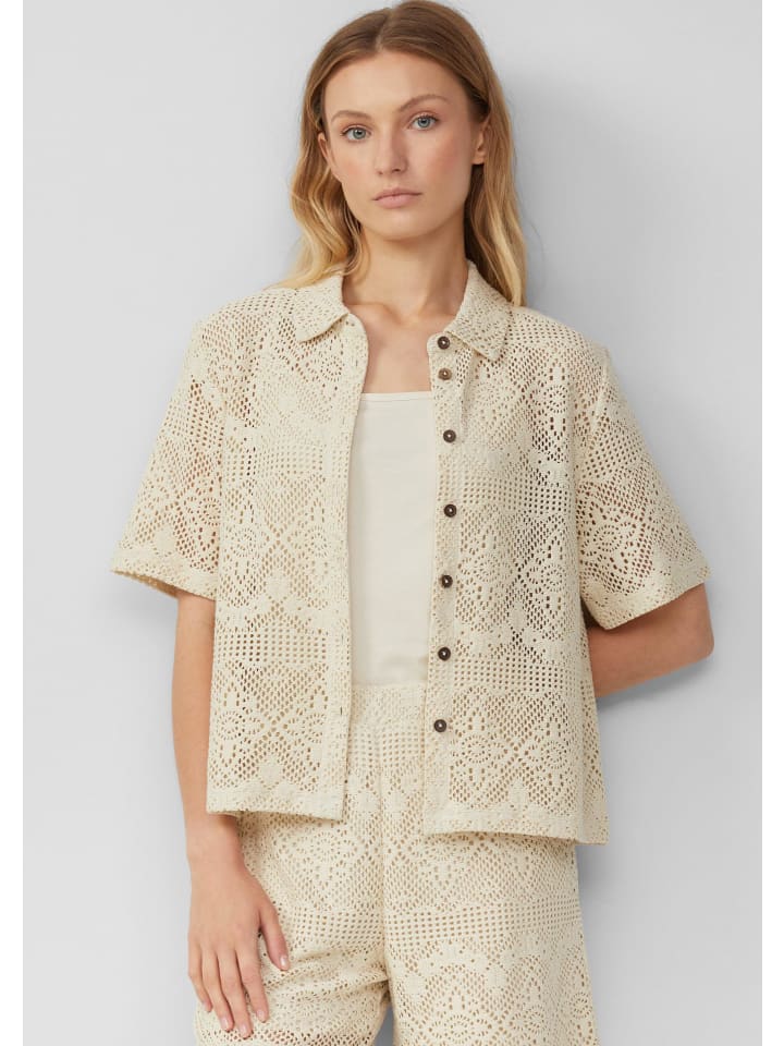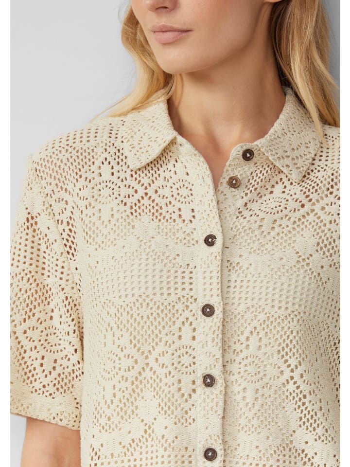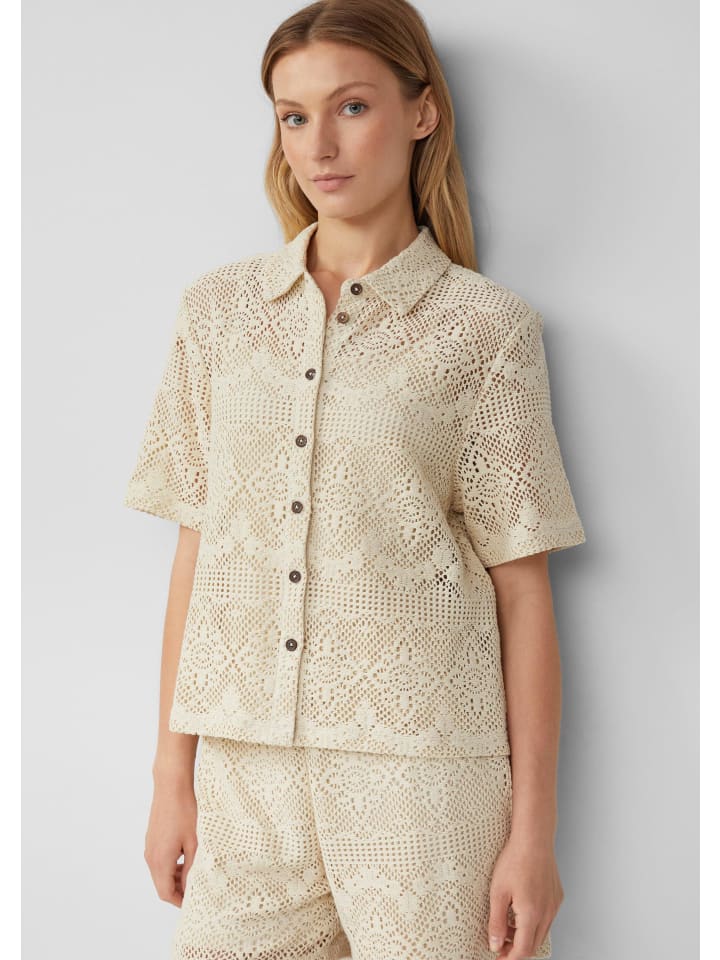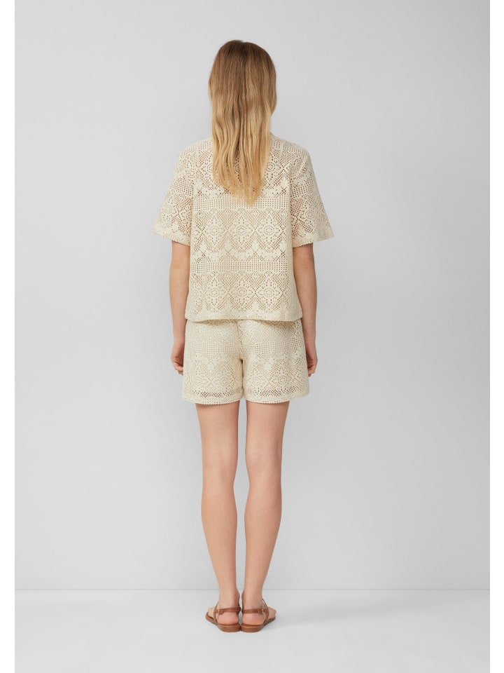 Воздушная и игривая: эта футболка из кружева, связанного крючком, станет вашим новым фаворитом на лето! Благодаря орнаментальному узору и укороченному крою она привнесет непринужденный и легкий стиль в вашу повседневную жизнь. Идеально подходит для кофеен или пикников в парке. Как ее носить? С джинсами или юбкой - вы сами решаете, насколько непринужденным будет ваш образ!