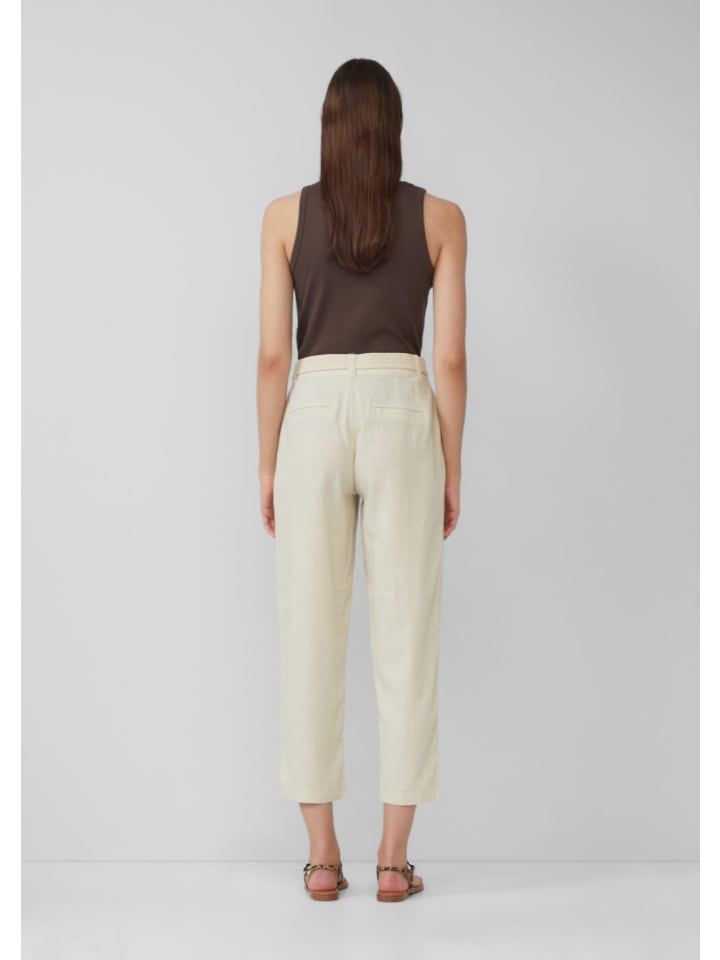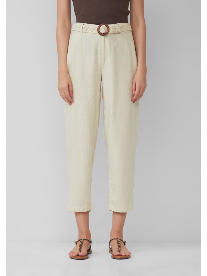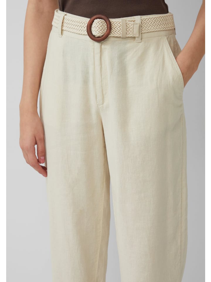 Стильные укороченные брюки-чинос с высокой талией и свободным кроем «бочонок». Плетеный пояс и практичные боковые карманы делают эти воздушные брюки из смесовой льняной ткани идеальным дополнением для расслабленных летних дней.