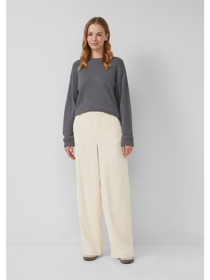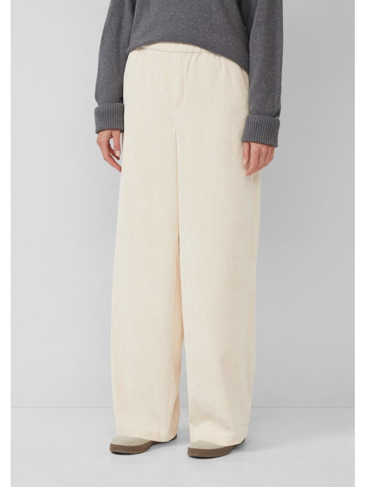 Эти повседневные вельветовые брюки свободного кроя сочетают в себе комфорт и стиль. Высокая талия на резинке и широкие штанины из плотного вельвета создают непринужденный образ. Практичные боковые карманы дополняют брюки из смесовой хлопковой ткани.