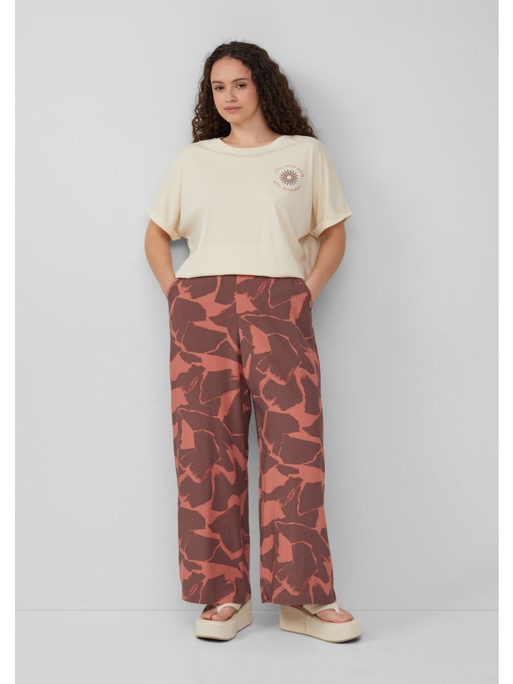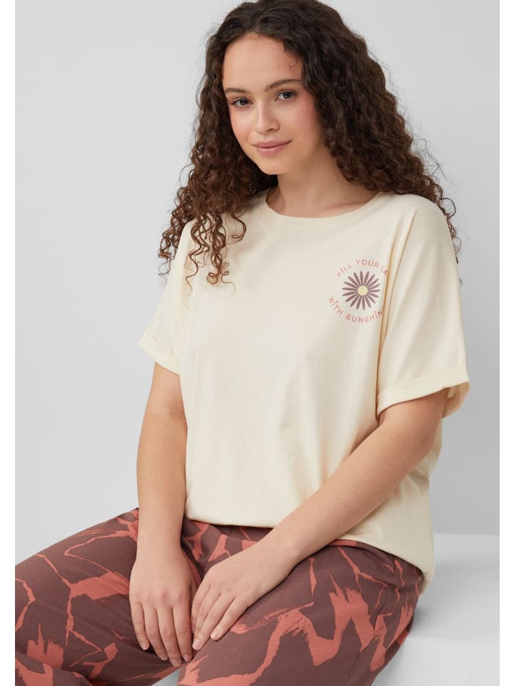 Свободный стиль на каждый день: эта свободная футболка с принтом спереди и закатанными рукавами «летучая мышь». Мягкий хлопковый трикотаж и свободный крой сделают ее вашим новым фаворитом для стильных повседневных образов.