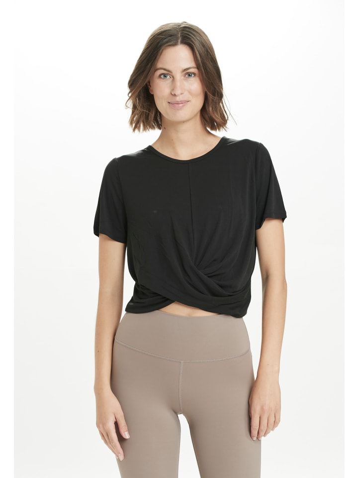 С Diamy от Athlecia вы получаете высококачественную футболку. Она идеально подходит для фитнеса, активного отдыха в городе или в качестве элемента стильного повседневного образа и разработана для женщин. Футболка изготовлена из модала и полиэстера. Ее внешний вид определяется простым однотонным цветом и укороченным кроем с перекрещивающимися драпировками. Благодаря технологии быстрого высыхания и дышащим свойствам она незаменима для спорта и отдыха.