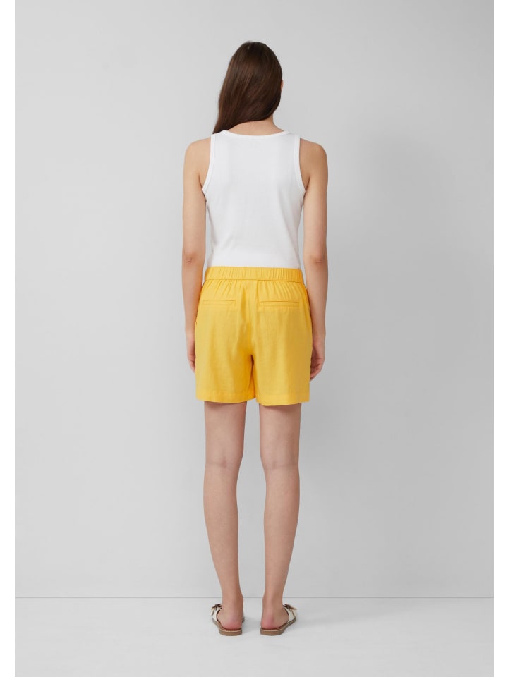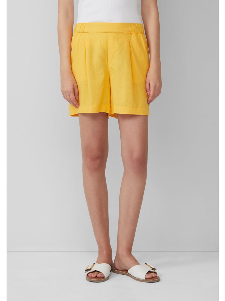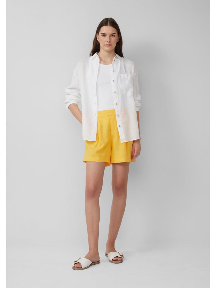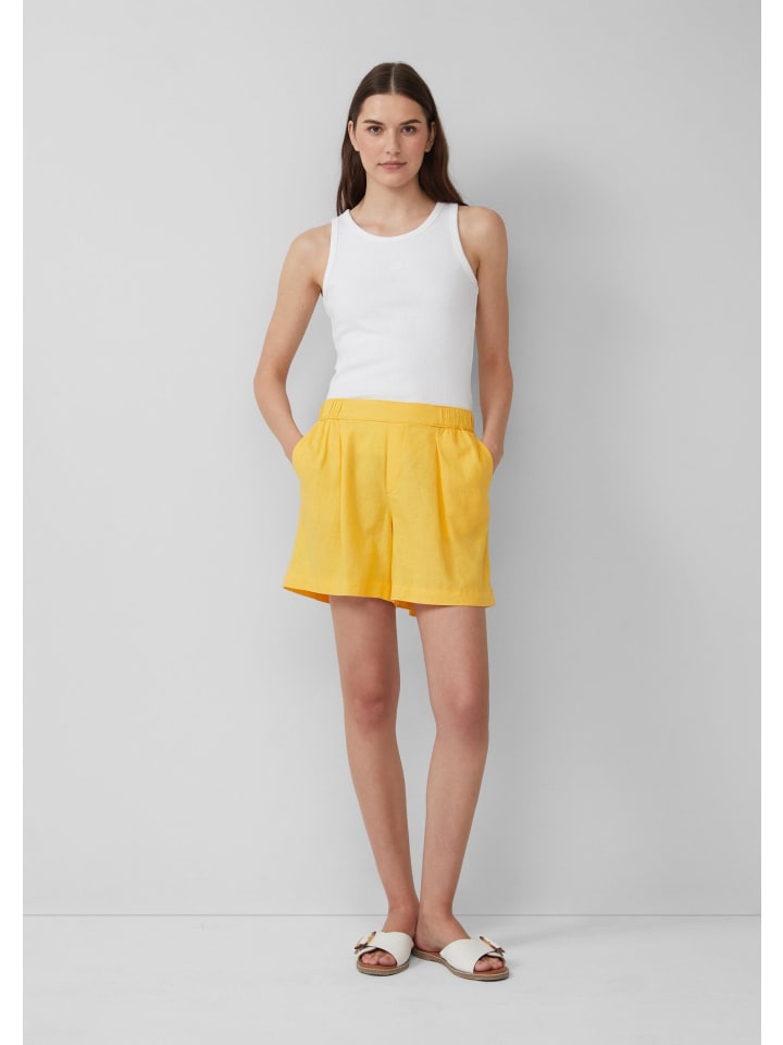 Эти воздушные шорты с высокой талией из смесовой льняной ткани сочетают в себе комфорт и стиль. Свободный широкий крой, практичные боковые карманы и эластичный пояс со складками делают их идеальным компаньоном для солнечных дней.