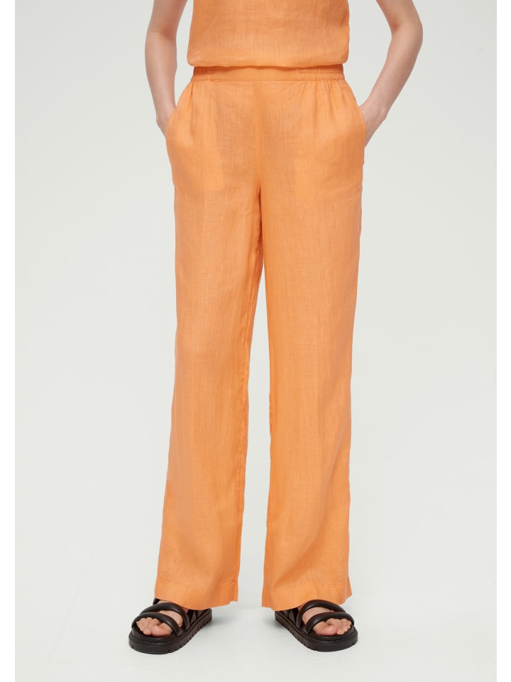 Эти воздушные, легкие льняные брюки свободного кроя с высокой талией и удобной резинкой. Прозрачная ткань с практичными карманами делает их идеальным компаньоном для расслабленных летних дней.