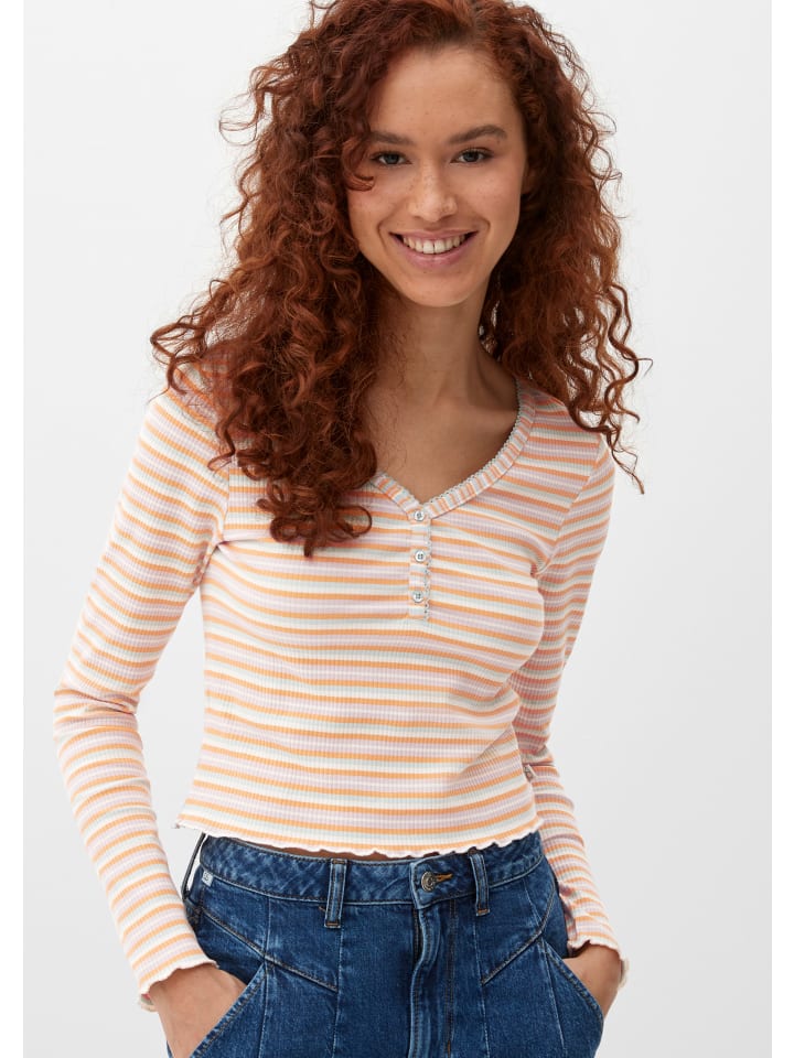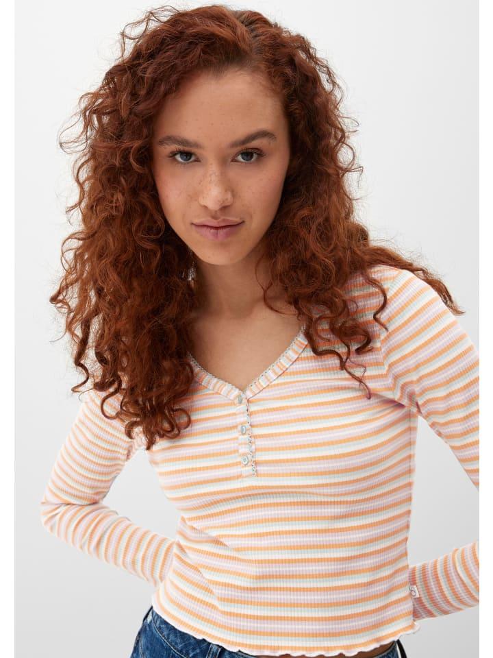 Ваш новый любимый образ: полосатая рубашка с длинными рукавами, V-образным вырезом и ребристой текстурой. Идеально подходит для повседневных и стильных образов. Эластичная ткань удобно сидит и обеспечивает максимальный комфорт. Продемонстрируйте свой индивидуальный стиль!