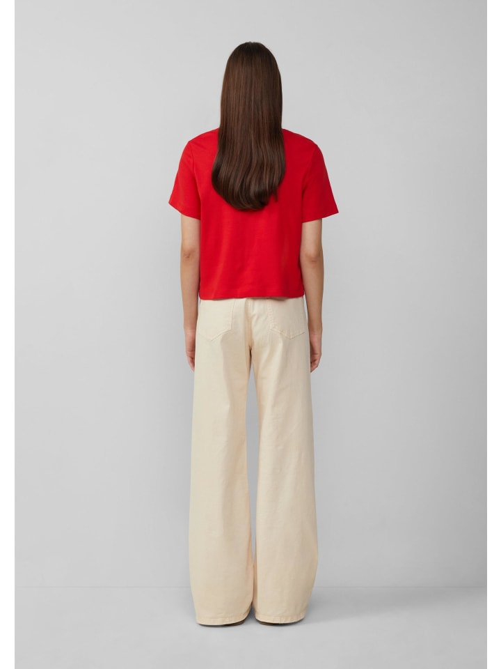 Ваш новый спутник для создания непринужденных повседневных образов: эта укороченная футболка из мягкого трикотажа интерлок с классическим круглым вырезом и свободным стандартным кроем. Неизменная базовая модель для универсальных сочетаний.
