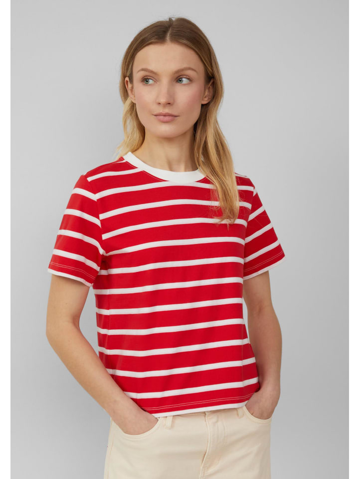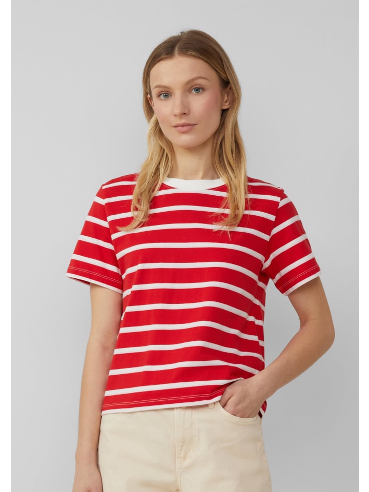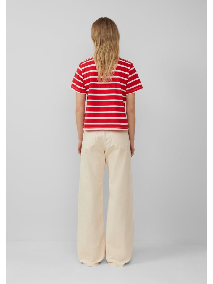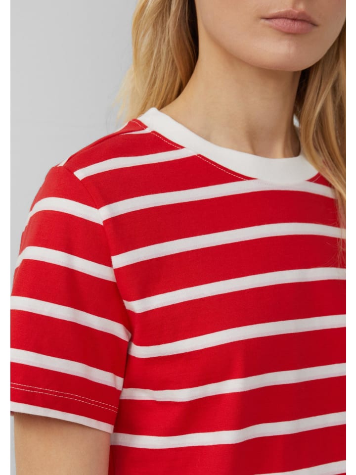 Повседневный и непринужденный образ на весь день: эта укороченная хлопковая футболка с морскими полосками впечатляет своей мягкой трикотажной тканью и классическим круглым вырезом. Классический повседневный образ в классическом стиле для непринужденной повседневной жизни.