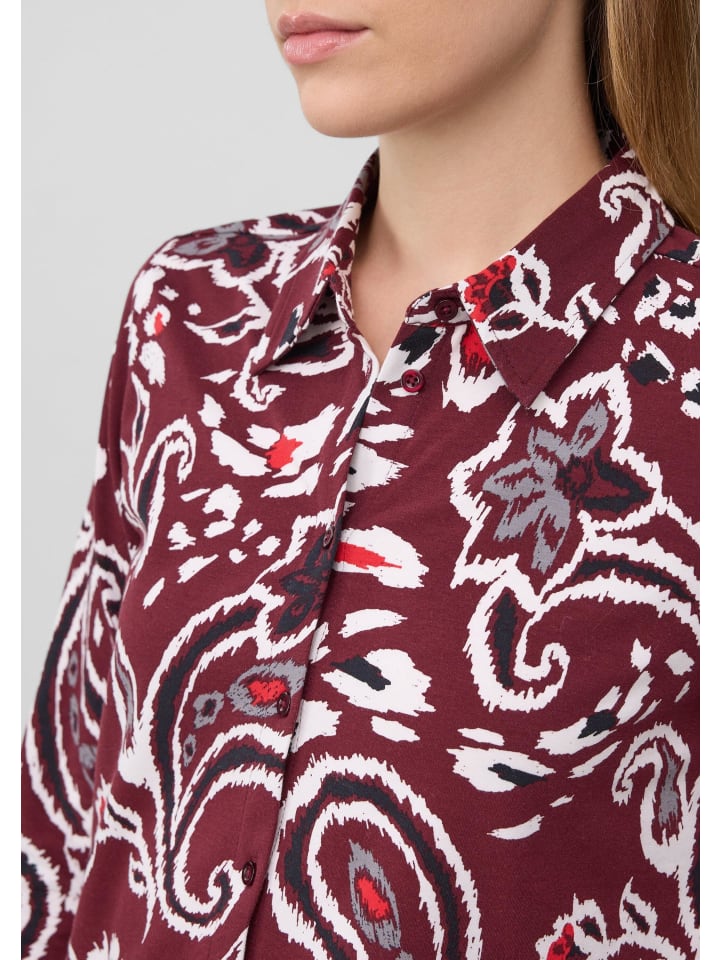 Эта блузка-рубашка из трикотажа очаровывает своей мягкой эластичной тканью и свободным кроем. Удлиненный закругленный подол сзади создает непринужденный образ. Идеально подходит для комфортных повседневных и стильных образов!