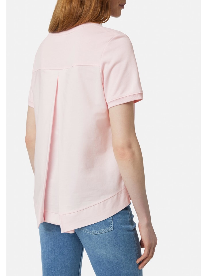 Повседневный шик и комфорт: эта футболка из смешанной ткани сочетает в себе свободный крой с женственными деталями блузки. Круглый вырез горловины с ребристым краем и короткие рукава с ребристыми манжетами придают изделию спортивный вид. Изготовленная из высококачественной хлопковой смеси, она обеспечивает комфортную повседневную носку. Сочетайте ее с джинсами или брюками для создания непринужденного элегантного образа.