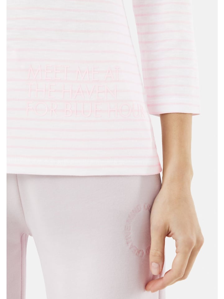 Полосатый шик и комфорт: эта трикотажная рубашка средней длины из джерси сочетает в себе стиль и комфорт. Приталенный крой и рукава ¾ подчеркнут вашу фигуру, а рисунок добавит индивидуальности. Смесь хлопка и модала обеспечит комфорт. Идеально подходит для повседневных случаев - сочетайте ее с джинсами или юбкой для создания непринужденного, но стильного образа.