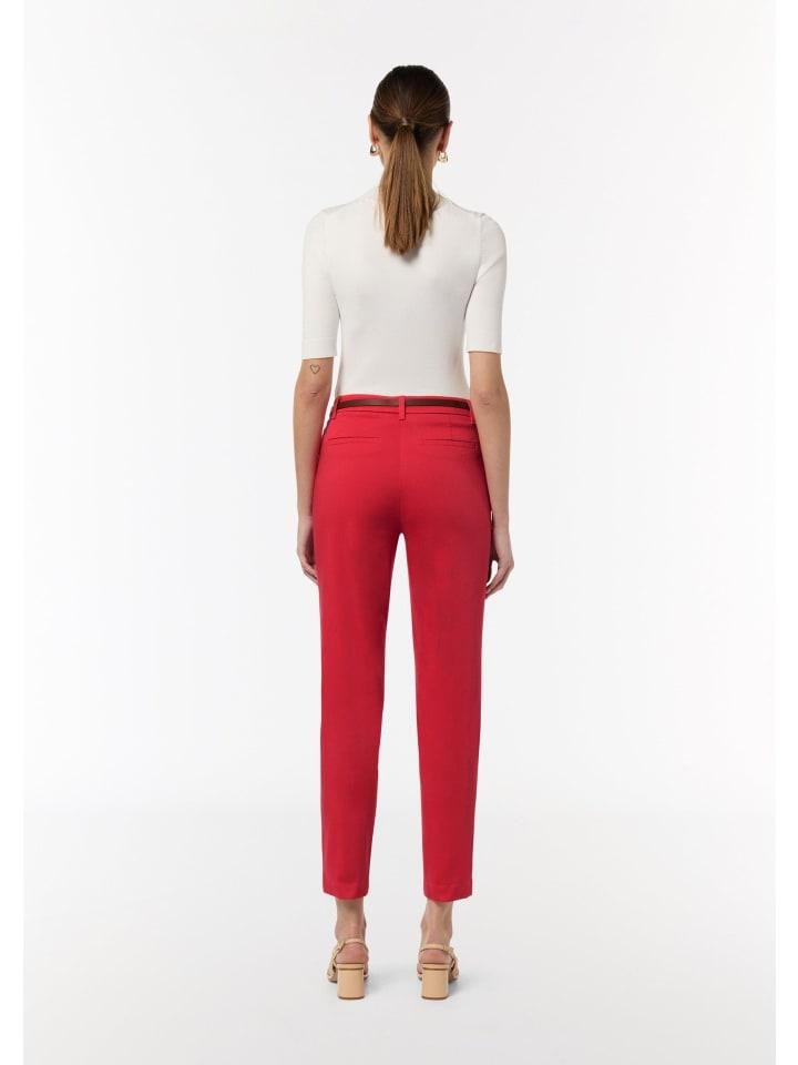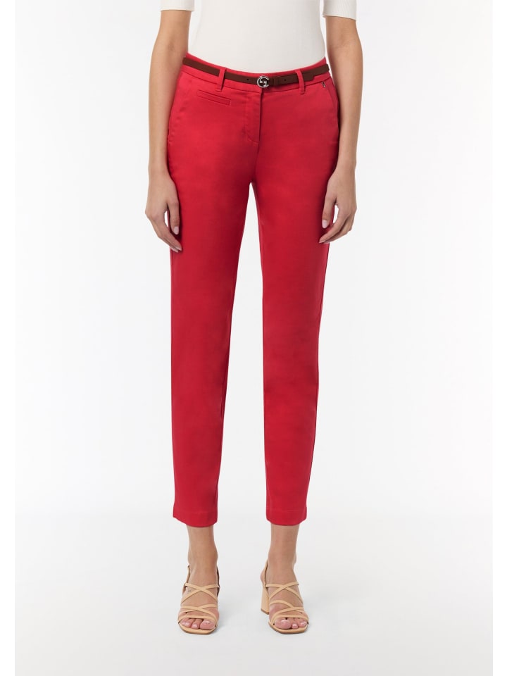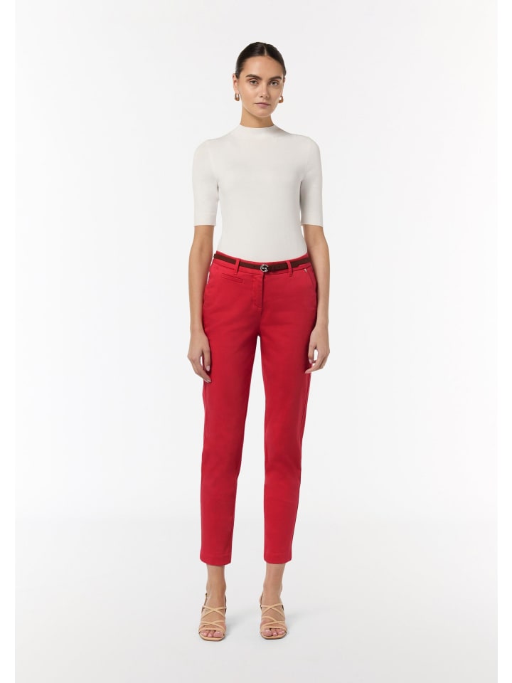 Женственные и удобные: эти брюки-чинос длиной 7/8 с интегрированным кожаным ремнем создают элегантный силуэт. Эластичный материал и классический крой обеспечивают свободу движений. Узкие штанины и длина до щиколотки подчеркивают фигуру. Сочетайте их с кроссовками для создания повседневного образа или с сандалиями для более элегантного образа.
