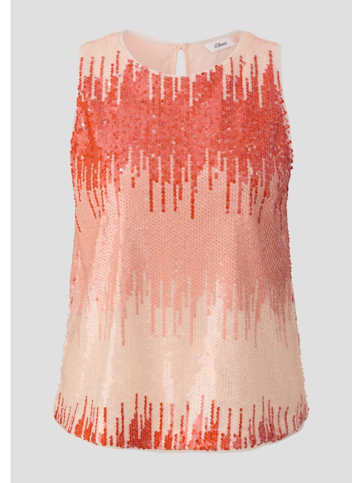 Откройте для себя женственную изюминку своего гардероба: наш топ со сверкающими пайетками - незаменимая вещь для стильных женщин. Струящаяся ткань и классический крой идеально подчеркивают фигуру. Благодаря безрукавному крою эта рубашка идеально подходит для теплых дней. Неброская застежка на пуговицы на шее добавляет элегантности. Круглый вырез горловины выгодно подчеркивает зону декольте. Носите его отдельно для создания гламурного образа или наденьте под пиджак для повседневного образа. Этот топ станет идеальным дополнением к вашему весенне-летнему гардеробу. Окунитесь в блеск и станьте сияющей королевой!