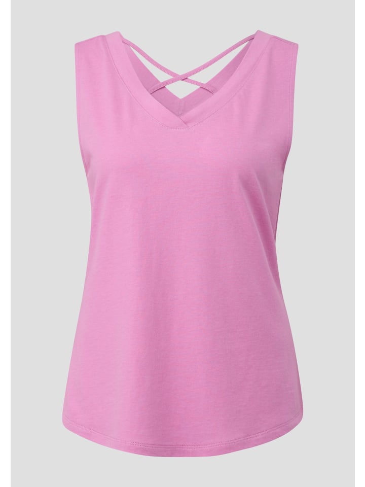 Элегантный и непринужденный трикотажный топ для расслабленных летних дней. V-образный вырез и перекрещивающиеся бретельки сзади добавляют женственности. Благодаря мягкому эластичному материалу и классическому крою он невероятно удобен в носке.