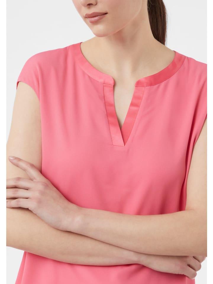 Универсальная рубашка-блузка из смешанной ткани: эта футболка сочетает в себе деловой шик и повседневный комфорт. Туникообразный вырез и короткие рукава создают женственный силуэт, а трикотажная подкладка обеспечивает комфорт. Сочетание трикотажа, ткани и атласа в классическом крое делает ее идеальным дополнением к различным случаям. Сочетайте ее с блейзером для создания делового образа или с джинсами для создания непринужденного образа.