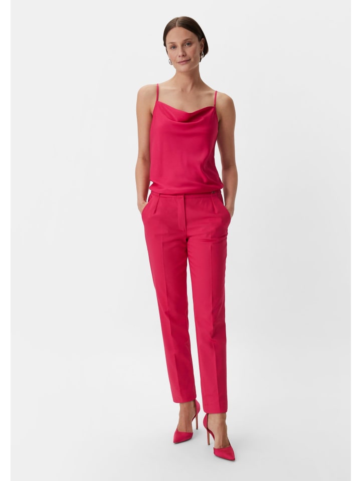 Стильные и женственные: эти брюки 7/8 с заутюженными стрелками впечатляют своим облегающим кроем и широкими штанинами. Изготовленные из высококачественного материала, они подчеркивают вашу фигуру и идеально подходят для делового стиля. Средняя посадка со складками и застежка на крючок гарантируют комфорт. Боковые карманы дополняют модный образ.