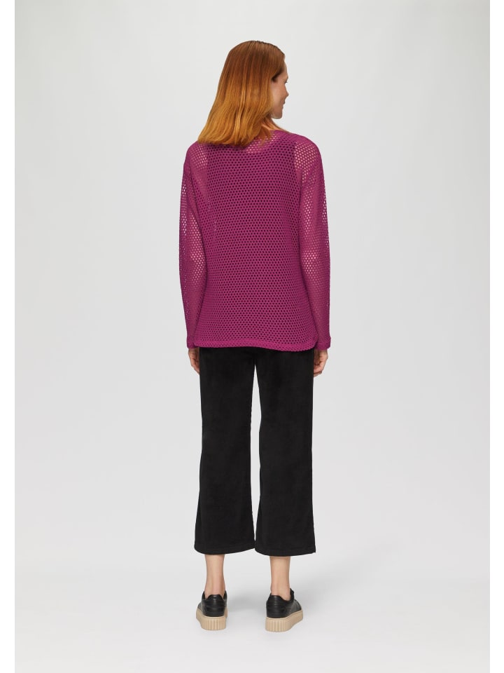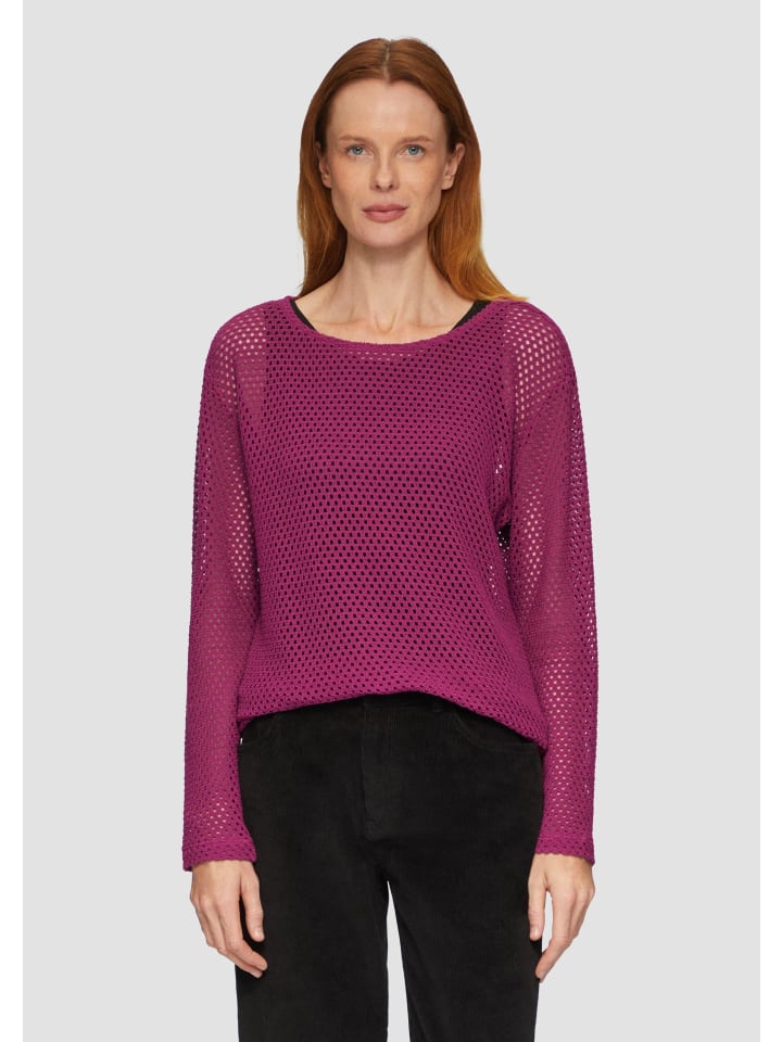 Расслабьтесь в этой воздушной и легкой рубашке с длинными рукавами из мягкого ажурного трикотажа. Вырез лодочкой и спущенные плечи создают непринужденный образ с непринужденной посадкой - идеально для уютных моментов.
