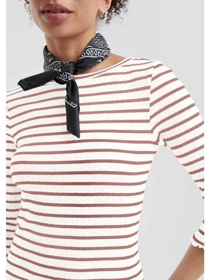 Ваш герой на каждый день: полосатая рубашка с рукавами 3/4 и вырезом «лодочка». Мягкая, эластичная и облегающая. Идеально подходит для создания непринужденных образов и стильных нарядов. Побалуйте себя этим универсальным спутником!